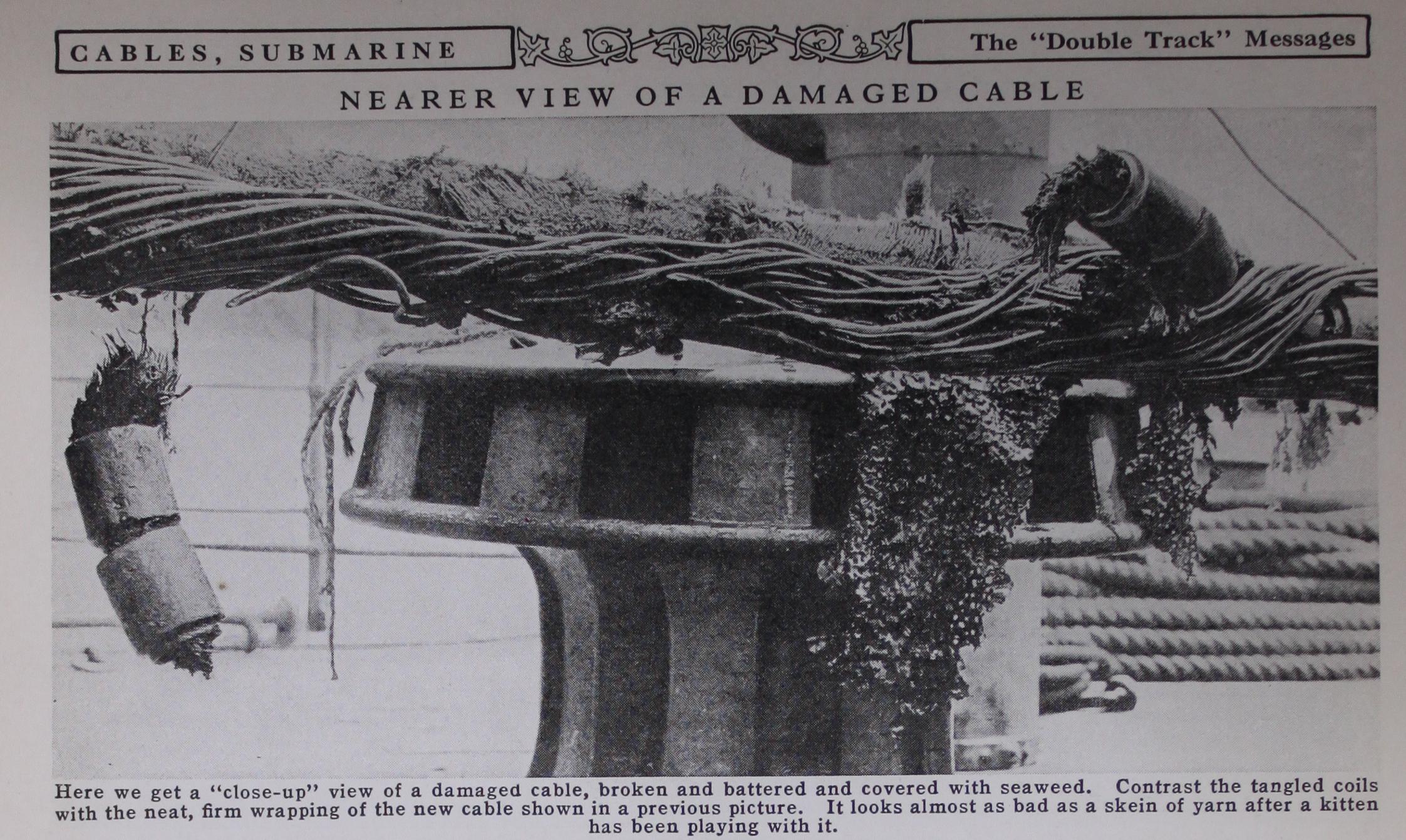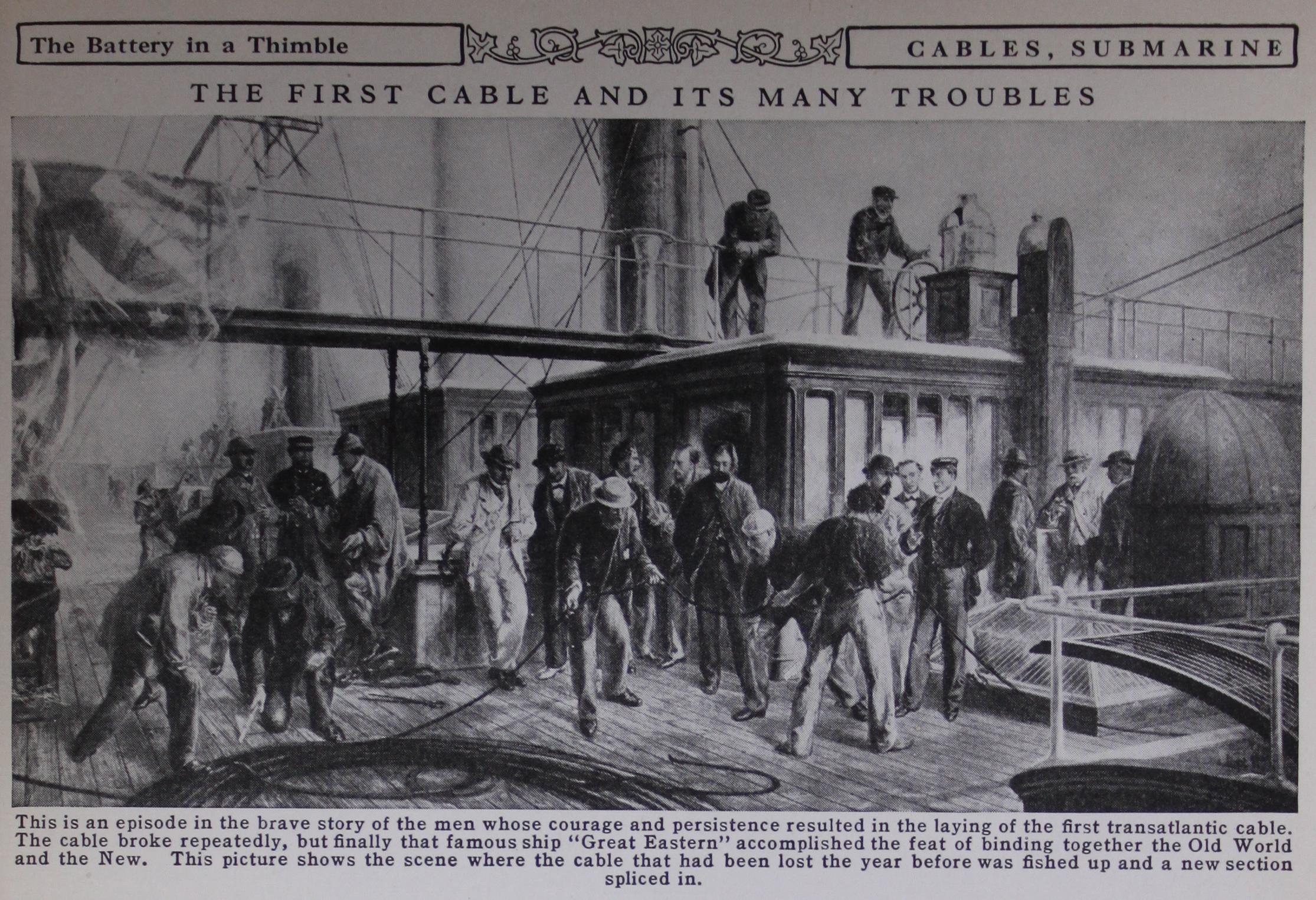 These are the submarine electric cables over which the New World and the Old still send their telegraphic messages to each other, in spite of the growing use of "wireless." They are the wonderful cords that bind the modern nations into one great group, so that a business man in New York can send his order to London and get a reply, sometimes within the space of three minutes.