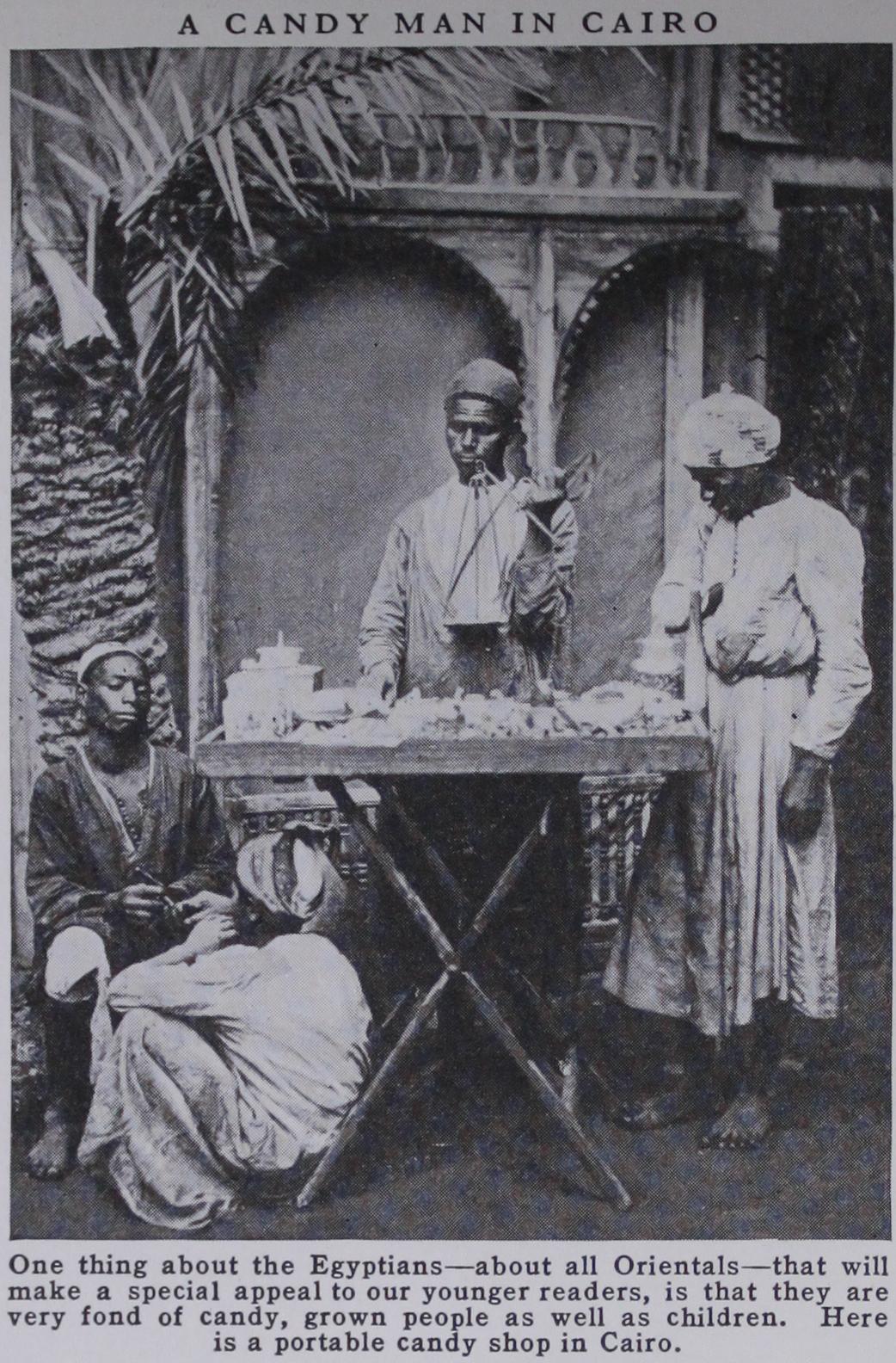 The Egyptian Idea of Department Stores Who can describe these wonderful bazaars, with their thousands of sellers and seemingly no buyers; packed with everything in the world that nobody wants; with the most appalling things to eat and the richest things to wear; with the gaudiest and most miserable jewels; with shoemakers, polishers, tailors, jewelers, coffee-grinders, and a host of busy folk work ing in the doorways or in the open fronts of shops; with every kind of work going on before your eyes; humanity. Was ever such a blending of color, or such a mixture of peoples, or such a living picture of the Old World? You are not surprised to be told that in those bulrushes Pharaoh's daughter found Moses; your surprise is that Moses is not there! You wonder if that group of Bedouin Arabs in the desert are Joseph's brethren; for all the change that has taken place they well might be.