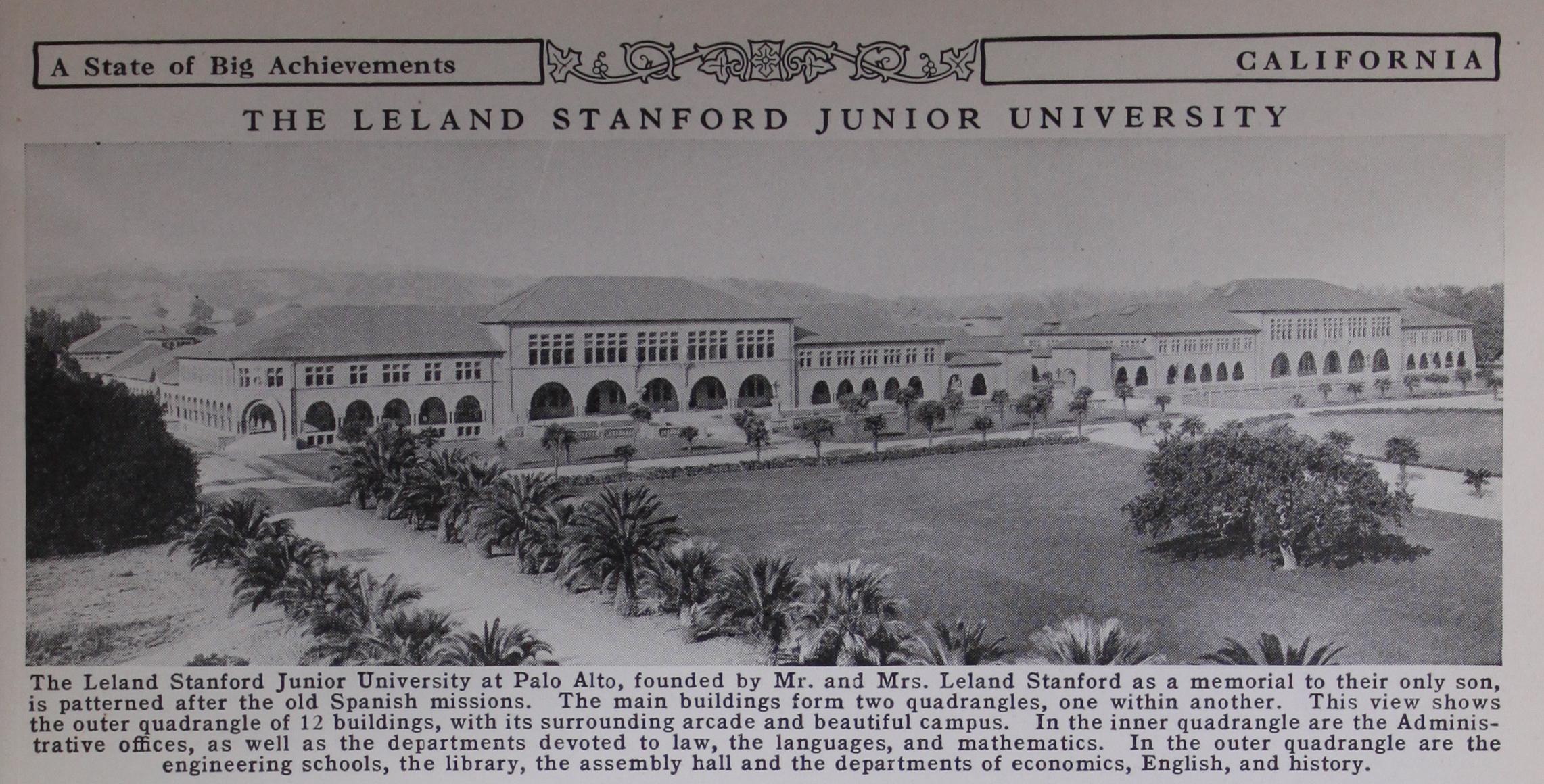 The diversified pop ulation which the state has attracted from all quarters of the United States, and other countries as well, is conspicuous for its interest in education. No state has a larger propor tionate enrollment of college students. Be sides some ten smaller institutions, there are two world-famous universities in the state, the State Uni versity at Berkeley and Leland Stanford Jr. University at Palo Alto.