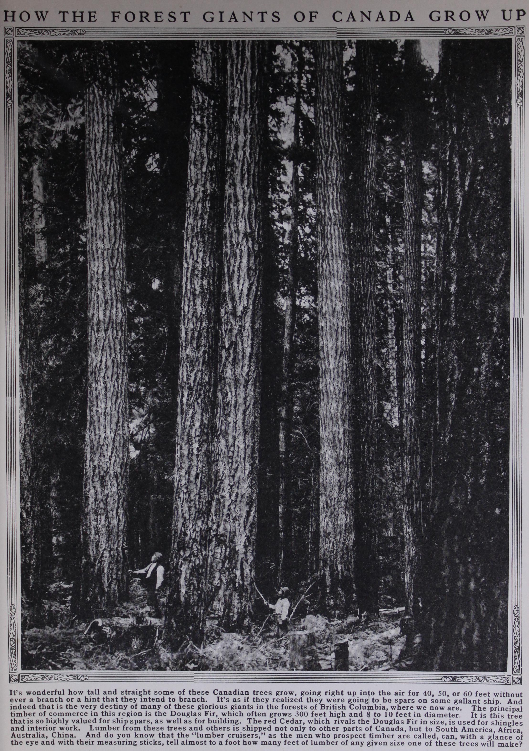 Next in importance in the list of Canada's natural resources are the vast shaggy forests which belt the land diagonally from east to west, covering nearly one-third of the whole surface. So little is yet known of this enormous region that estimates of its extent vary greatly, ranging from half a billion to a billion acres. It is generally agreed, however, that there are from 200,000,000 to 300,000,000 acres of merchant able timber, about one-half of the area and one-third of the supply available in the United States. Warned by the experience of her southern neighbor, Canada is conserving this great resource, and has set aside 159,000,000 acres of forest reserves.