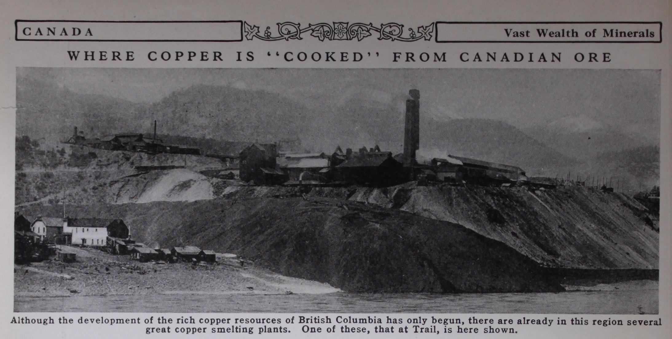 In minerals, too, Canada is richly endowed, though development is still so slight that the country pays more for imported minerals than it receives from its mines. Almost every important mineral is known