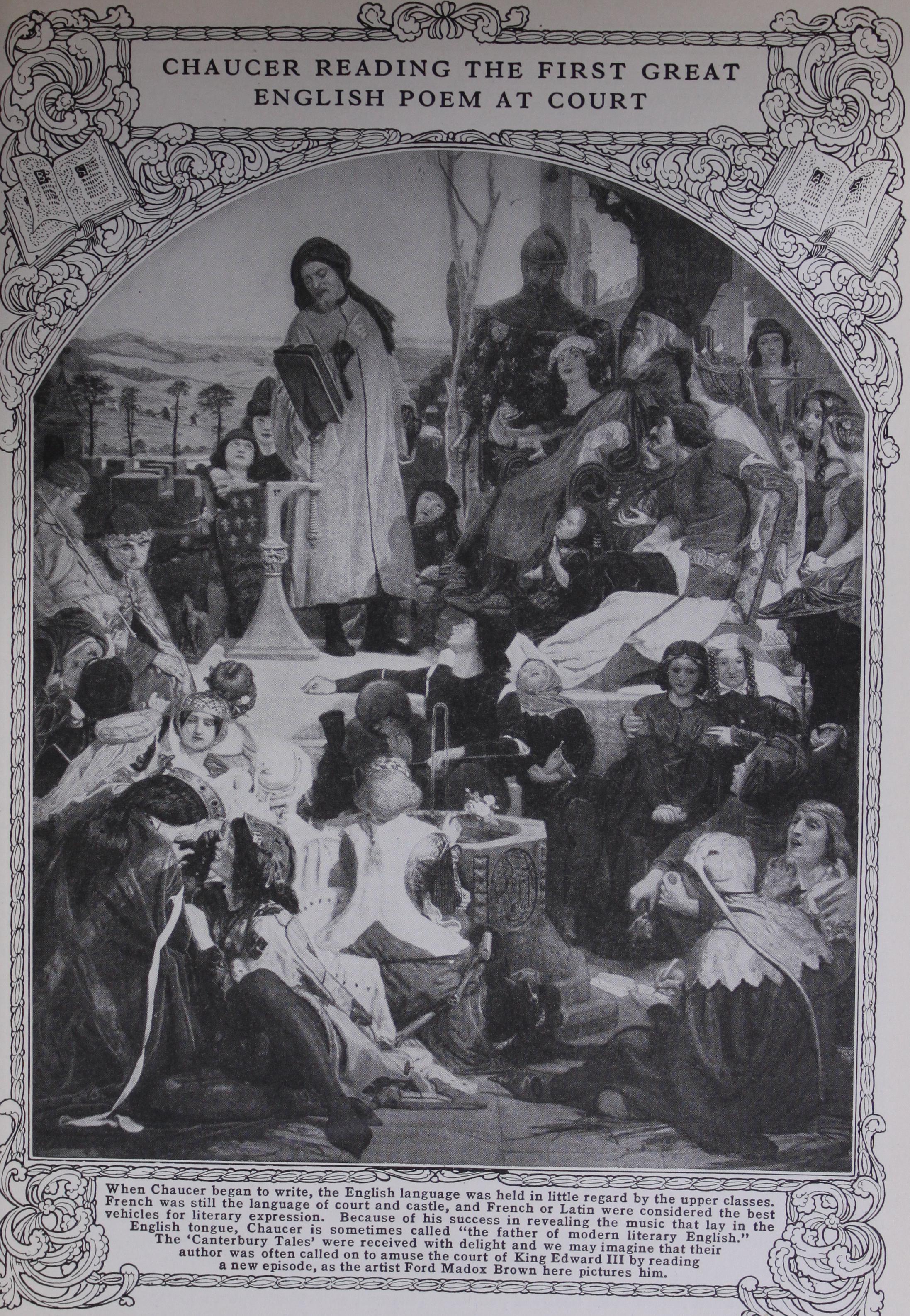 In the quotations in this article the ancient spellings and words have been modernized, for many of Chaucer's words look very queer to our eyes. He wrote more than 500 years ago, and a language is bound to change a great deal in that time. It is well to begin to read the 'Canterbury Tales' in some good modern version, such as Mrs. H. R. Haweis"Chau cer for Children'. But it will not be long before you will want to read the tales just as Chaucer wrote them, and you will find that with a little pains you will have no trouble in under standing them.