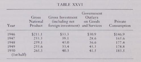 The component parts of the gross national product for are shown in Table XXVI.
