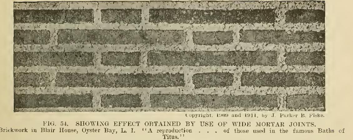 A poor joint is often to be noted in the laying of face brick with "butter" joints. The required thinness of the joint cannot be secured by a full spread of mortar, and the mortar is deposited as shown in Fig. 56 (c), with the result shown hi Fig. 56 (d), where the center is unprotected and there is a risk of spoiling under pressure as indicated by the ragged line.