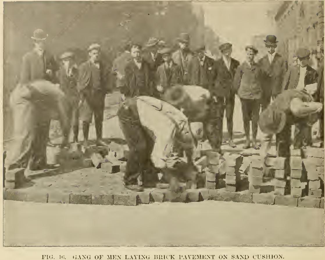 Paving Brick. "Paving brick" was formerly the name given to any very hard, ordinary brick suitable for paving purposes. The development of the together. Shales and fireelays stand a much higher heat than ordinary clays. Paving brick made from shales are raised in the kiln to a degree of beat in which they are vitrified, and become as glass, practically impervious to moisture. Great care is taken in their cooling so that they may anneal and possess the requisite toughness.