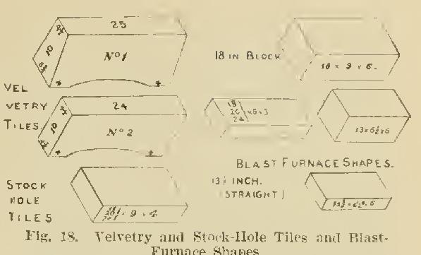 Firebricks in color are cream, yellow, or brown. They are made in immense variety of sizes and shapes, to meet Special commercial applications. The size of the ordinary firebrick is 9 by 41/2 by in., and its weight approximates 7 lbs.