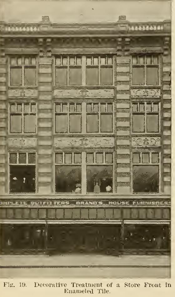 If it is desired to distinguish between a glazed brick and a true enameled brick, a broken corner readily shows the difference. In the glazed brick, the layer of clay composition shows in the break, while no line will show in the ease of the enameled brick.