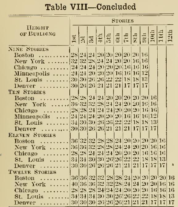 Table IX may be taken as a guide to the proper thickness, at the different stories, for residence walls of varying height and length.