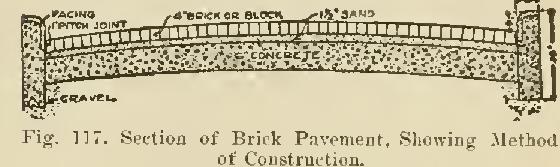 Broken bricks can be used only to break joints in starting courses and in making closures, but in no ease shall less than half a brick be used. ' The bricks shall he laid on edge, close together, in straight lines across the roadway, between gutters; and at right angles to the curbs, and perpendicular to the grade of the street. Gutters shall be constructed as directed by the Engineer.