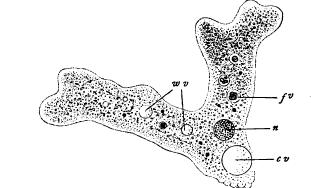 During the past thirty years, the theory of organic descent has been shown, by an overwhelming mass of evidence, to be the only tenable conception of the origin of diverse living forms, however we may conceive the causes of the process. While the study of general zoology and botany has systematically set forth the results, and in a measure the method, of organic evolution, the study of microscopical anatomy has shown us the nature of the material on which it has operated, demonstrating that the obvious characters of plants and animals are but varying expressions of a subtle interior organization common to all. In its broader outlines the nature of this organization is now accurately determined ; and the " cell-theory," by which it is formulated, is, therefore, no longer of an inferential or hypothetical character, but a generalized statement of observed fact which may be outlined as follows: In all the higher forms of life, whether plants or animals, the body may be resolved into a vast host of minute structural units known as cells, out of which, directly or indirectly, every part is built (Fig. I). The substance of the skin, of the brain, of the blood, of the bones or muscles or any other tissue, is not homogeneous, as it appears to the unaided eye. The microscope shows it to be an aggregate composed of innumerable minute bodies, as if it were a colony or congeries of organisms more elementary than itself. These elementary bodies, the cells, are essentially minute masses of living matter or protoplasm, a substance characterized by Huxley many years ago as the "physical basis of life " and now universally recognized as the immediate substratum of all vital action. Endlessly diversified in the details of their form and structure, cells nevertheless possess a characteristic type of organization common to them all ; hence, in a certain sense, they may be regarded as elementary organic units out of which the body is compounded. In the lowest forms of life the entire body consists of but a single cell (Fig. 2). In the higher multicellular forms the body consists of a multitude of such cells associated in one organic whole. Structurally, therefore, the multicellular body is in a certain sense comparable with a colony or aggregation of the lower one-celled forms.' From the physiological point of view a like comparison may be drawn. In the one-celled forms all of the vital functions are performed by a single cell ; in the higher types they are distributed by a physiological division of labour among different groups of cells specially devoted to the performance of specific functions. The cell is therefore not only a unit of structure, but also a unit of function. " It is the cell to which the consideration of every bodily function sooner or later drives us. In the musclecell lies the riddle of the heart-beat, or of muscular contraction ; in the gland-cell are the causes of secretion ; in the epithelial cell, in the white blood-cell, lies the problem of the absorption of food, and the secrets of the mind are slumbering in the ganglion-cell. . . . If then physiology is not to rest content with the mere extension of our fig. 2.— Amaeda Proteas,an animal consisting of a single naked cell, x 380. (From Sedgwick and Wilson's Biology.) e. The nucleus ; m.v. Water-vacuoles ; c.v. Contractile vacuole ; f.v. Food-vacuole.