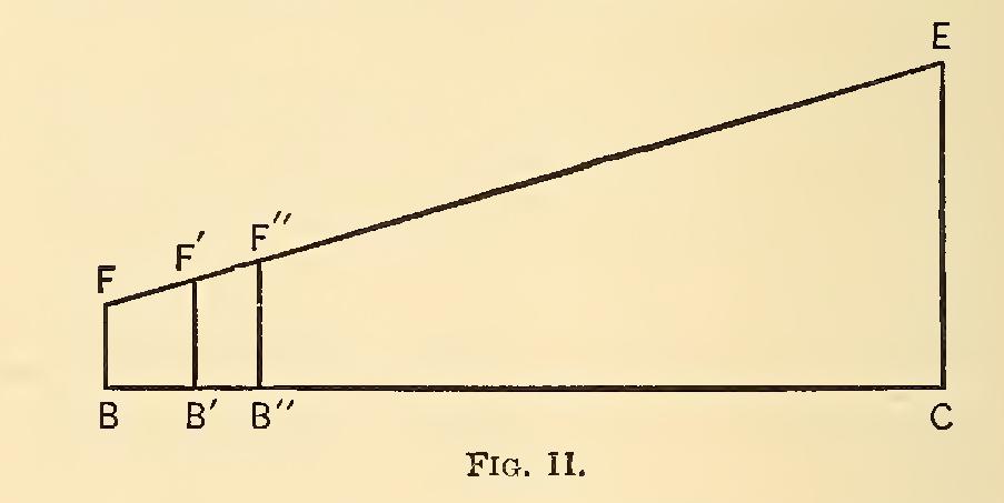 Figure I. represents the social utilities, the total number of pleasure-giving commodities at the disposal of society at any given time. It may be regarded as made up of an indefinite number of parallel vertical lines like AB, A'B', A"B", . . . DC, diminishing in length toward the right. This figure corresponds to the scale of diminishing utilities of Chapter and the commodity AB may be assumed to have ten units, and DC eight units, all other commodities ranging between these limits. It will be noticed that the number of commodities is measured by the length of the line BC, the intensity of the pleasure conferred by the length of the vertical lines. As additional commodi ties are consumed, BC is lengthened, and new vertical lines, shorter than DC, are erected. The scale previously given represented the consumption of an individual consumer, while this figure represents social consumption. In both instances commodities are arranged in the order of their surplus of utility over the expense to the consumer of securing possession of them.