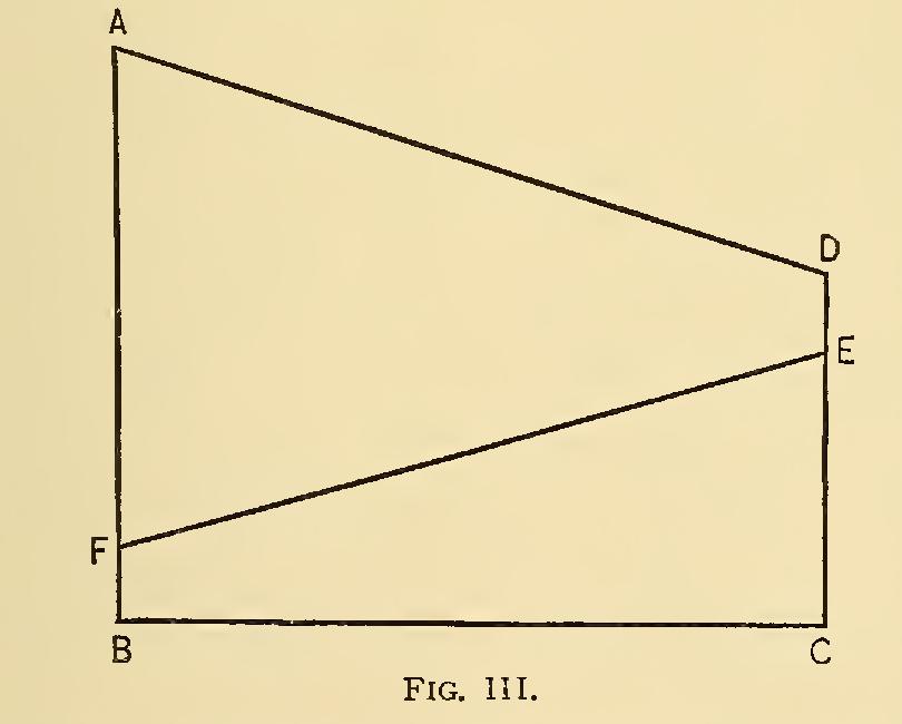 When these figures are combined as in Figure III., the resulting surplus is clearly shown. Even the earliest utilities are represented as having a certain cost, FR, though in excep tional cases that cost might disappear, in which cases F would coincide with B; and even the latest utilities are represented as having a cer tain surplus, DE, though this also might dis appear, in which case E would coincide with D. Now, the prosperity of society is indicated by the size of the area AFED. Prosperity is in creased by anything which increases this area. Errors would probably be made if it were at tempted to extend the vertical lines shown in Figure I. through the cost area of Figure III. The particular commodity of which the cost is FB might not have a surplus AF; but the line BC of Figure III., like the corresponding lines of the preceding figures, does represent all com modities, the whole area ABCD does repre sent their utility, and that part of this area which is below the slanting line FE represents their cost. The object of the discussion on which we are entering will be better understood if the relations expressed by these areas are kept constantly in mind. Prosperity is increased either by increasing the area of the quadrilateral AC, or by lessening that part of it which makes up the quadrilateral FC.