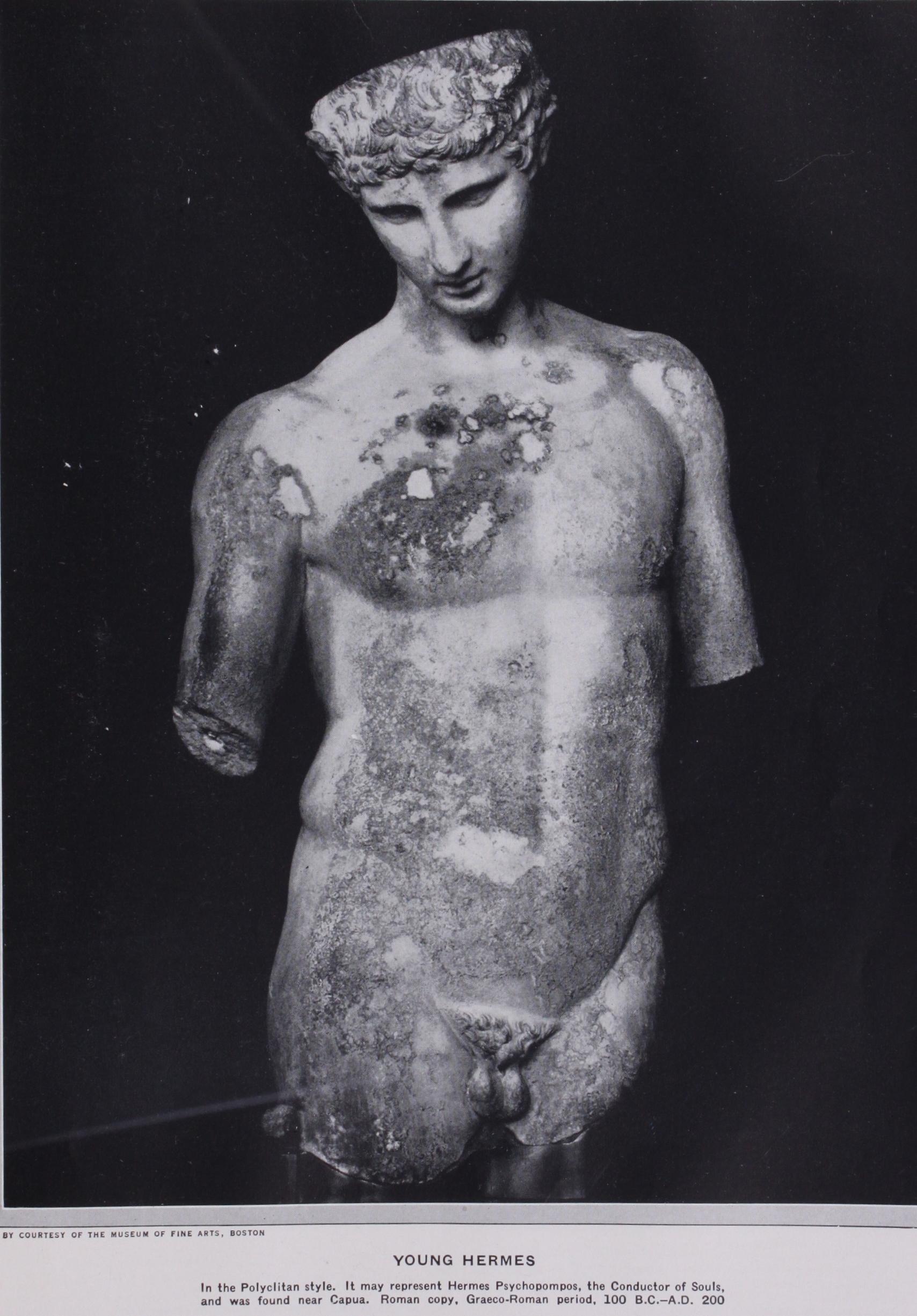 It is the custom of studying and copying the forms of the finest of the young athletes, combined with the Greek habit of complete nudity during the sports, which lies at the basis of Greek excellence in sculpture. Every sculptor had unlimited op portunities for observing young vigorous bodies in every pose and in every variety of strain. The natural sense of beauty which was an endowment of the Greek race impelled him to copy and pre serve what was excellent, and to omit what was ungainly or poor. Thus there existed, and in fact there was constantly accumulating, a vast series of types of male beauty, and the public taste was cultivated to an extreme delicacy. And of course this taste, though it took its start from athletic customs, and was mainly nurtured by them, spread to all branches of portraiture, so that elderly men, women, and at last even children, were represented in art with a mixture of ideality and fidelity to nature such as has seldom been reached by the sculpture of any other people.