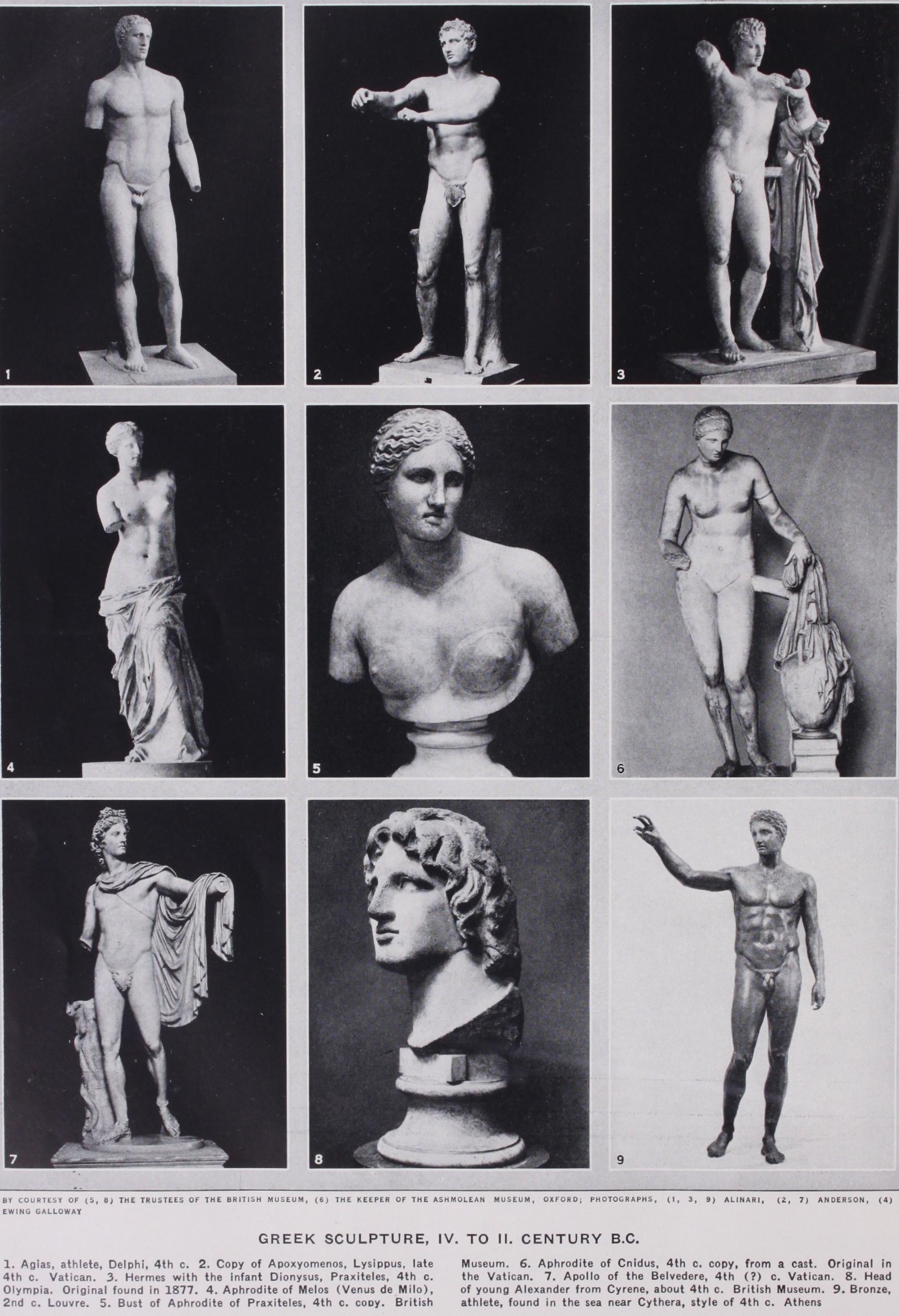 Beside the bronzes found in Rome we may set those retrieved from the sea on the coast of Cythera, the contents of a ship lost on the way from Greece to Rome. The date of these statues has been disputed, but, even if executed in the Roman age, they go back to originals of the 5th and 4th centuries. The most note worthy among them is a beautiful athlete (Pl. VI., fig. 9), stand ing with hand upraised, which reflects the style of the Attic school of the 4th century.
