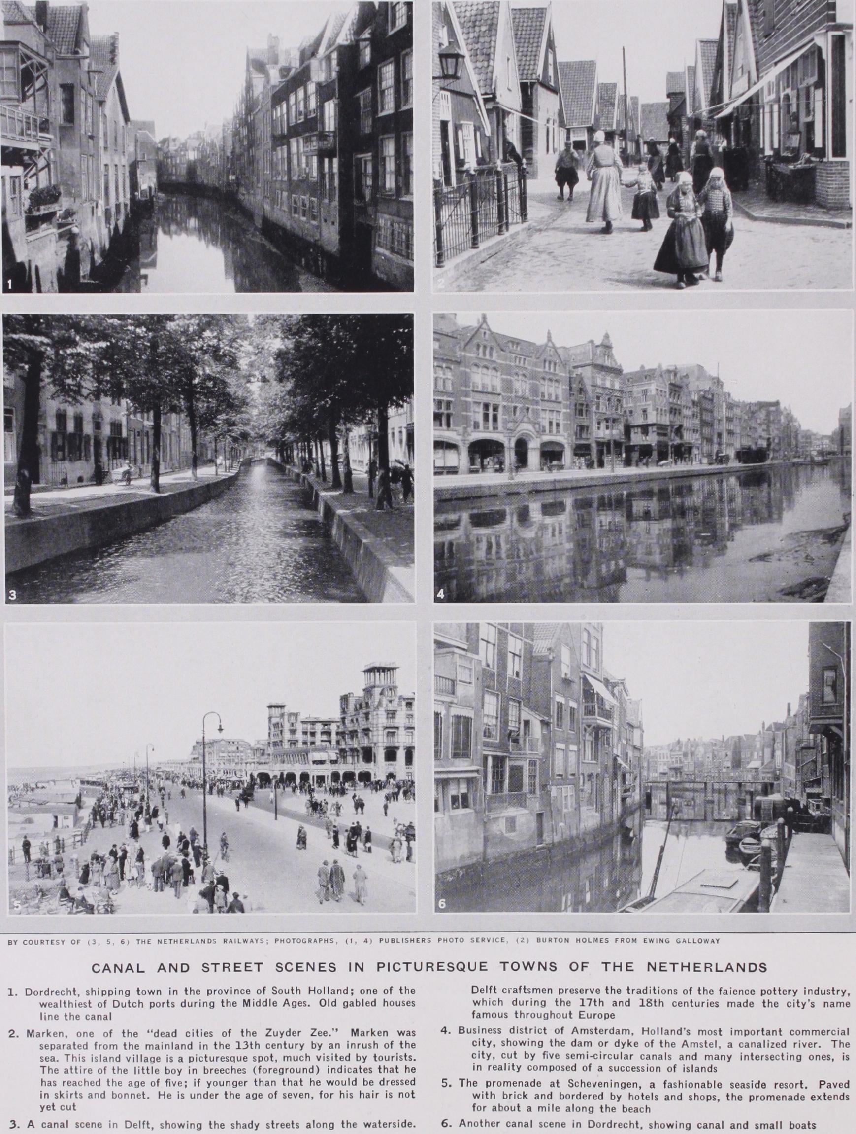 The shipping of the Dutch ports considerably expanded after extensive improvements had been effected ; Amsterdam, already in 1825 connected with the North Sea by the "Noord-Hollandsche Kanaal," obtained direct access to the sea in 1876 by the "Noord zeekanaal." As the large river connecting Rotterdam with the sea was always subject to becoming blocked with sand, here too the building of a canal ("Nieuwe Waterweg")—completed in 1896—was necessary. The development of shipping of the Dutch maritime ports may be seen from the following figures: The share of the various countries in Dutch trade is shown in the following figures (percentages of total value, 1926) : Transport. Maritime Shipping.—The supplanting of sailing vessels by steamships did not take place in Holland until after other countries had given the lead: the following figures indi cate the development of the Dutch merchant fleet: Before the war one fourth of these vessels flew the Dutch flag ; in 1913 the percentage was 25.8; in 33.07; and 1926: 28.22. The greater part of these entered at the port of Rotterdam; in 1913, 67.9% of the total number, against 13.5% at Amsterdam; 1926: 59.39% and 15.58% respectively. At the same time, the traffic in the ports situated on the Nieuwe Water weg west of Rotterdam considerably increased (1926: Vlaardingen 9.5o%, Schiedam 3.05%, Hook of Holland Inland Navigation.—An extensive network of rivers, extended by innumerable canals, has led to a considerable development of inland shipping in Holland. The inland fleet consisted in 1920 of 13,00o ships of a tonnage of 1.9 million tons.