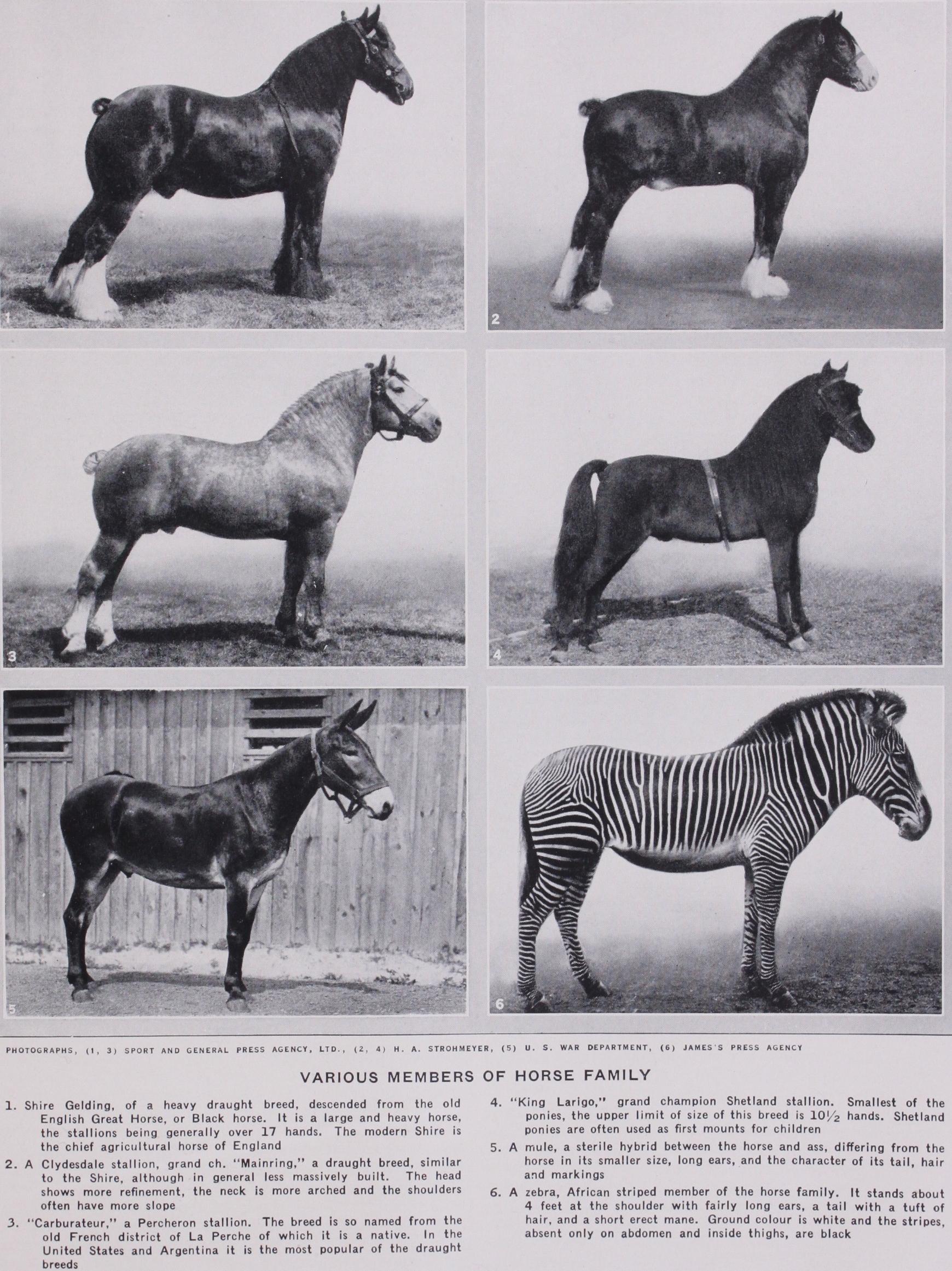 The other members of the Equidae (asses and zebras) are de scribed in separate articles. There is no question of their specific distinctness from the horse. Hybrids of all kinds are easily bred, but there is no authentic case of fertility either in mules or in zebra-horse or zebra-ass hybrids.
