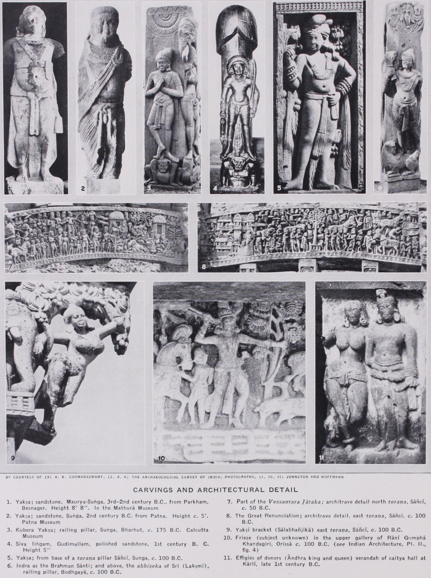 INDIAN AND SINHALESE ART AND ARCHAE OLOGY. Indian religion and ritual exist in two forms, known to Indians as the Vedic and the Agamic traditions, but more often designated by western scholars as respectively Aryan and Brahmanical, and Dravidian (Southern) and popular. Vedic (Aryan) religion consisted in a worship of the great powers of nature by means of hymns and sacrifices (yajila), without any use of temples or images, or any devotional cult properly so to be described. On the other hand, the much older and quantita tively predominant element of the population worshipped local and tutelary deities, powers of nature conceived as personal be ings; these deities included the Yaksas (genii, tree-spirits, sources of life and abundance), Nagas (dragons, spirits of springs and lakes), and innumerable goddesses of fecundity or disease, the aktis of later Hinduism. To this Agamic tradition belonged an elaborate cosmology, many myths, the doctrines of reincarnation and acts (sannsdra and karma), the practice of asceticism (sannyasa) and ecstatic meditation (yoga), which appear only late in Vedic literature.