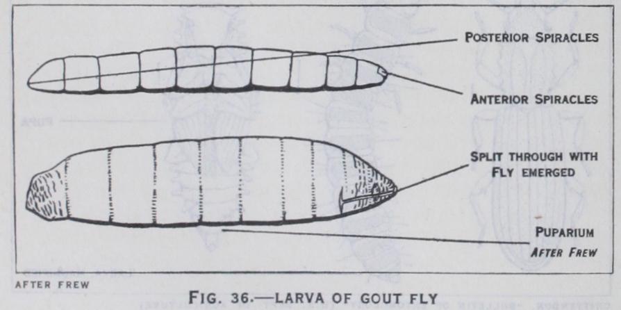 From the foregoing remarks it will be noted that metamorphosis is of two types. In cases where the young insects are nymphs and there is no pupa, the change to the imago is direct and gradual, and metamorphosis is said to be incomplete (fig. 35). When the young insects are larvae which ultimately transform into pupae, metamorphosis is of an indirect and complex character and is said to be complete (fig. 33).
