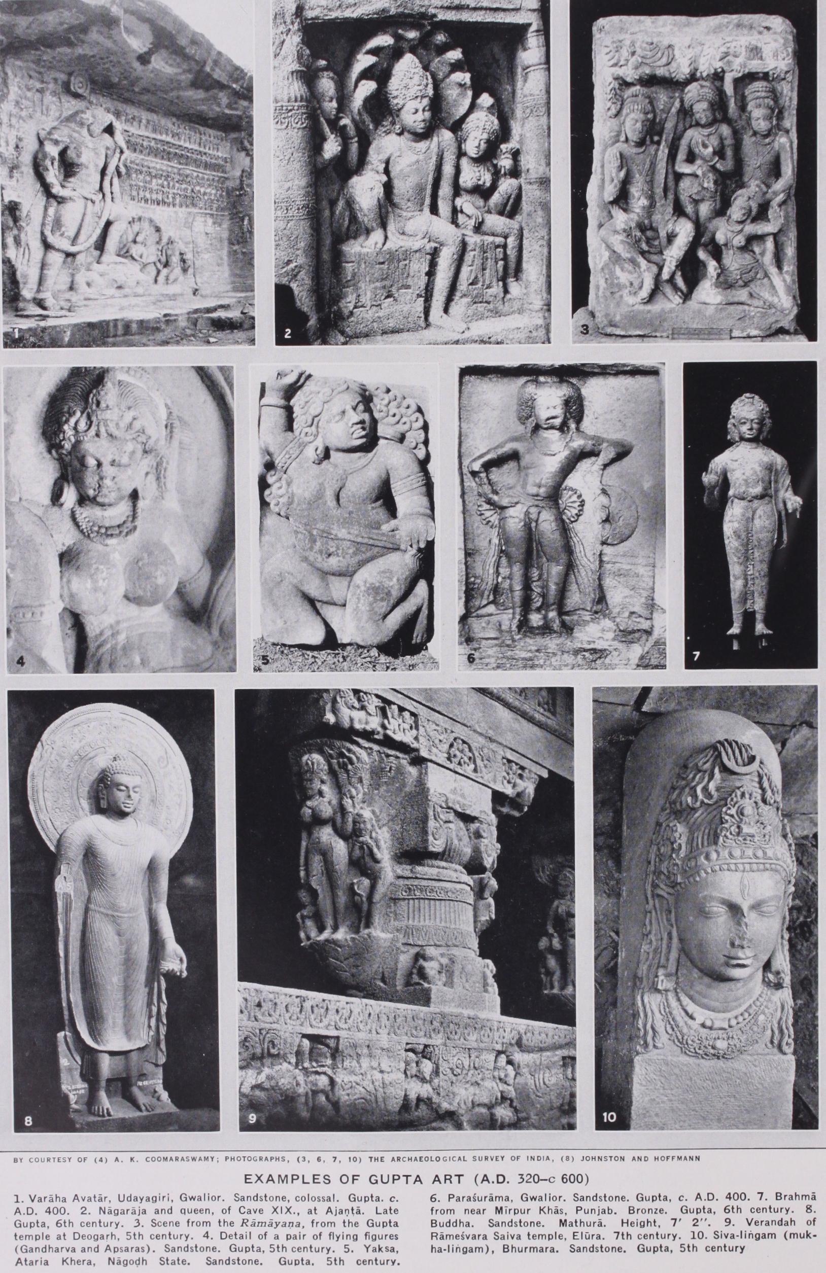 KUSANA Assuming the date of A.D. 120 for the accession of Kaniska, we can safely say that the first century and a half of the Chris tian era represents the most critical period in the history of art in India, the second to the fourth century that of highest achieve ment. For the earlier period, and only to a somewhat lesser extent the later, the prolific school of Mathura is of primary importance, for here were evolved types that can be traced in all the later development. While confining ourselves in the main t o a study of the Buddhist art at this time, we must recollect that at all times "Buddhist India" was equally and at the same time a Hindu India; the so-called Hindu renaissance of the Gupta period does not represent a reaction, but rather the flowering and culmination of a previous development. So far as cult and literature are con cerned, this is self-evident; as regards the art, while Buddhist monuments are at first much more abundant and magnificent, this probably means that Hindu cults adhered longer to the use of impermanent materials such as wood and clay for buildings and images, as in southern India up to the beginning of the seventh century. Thus all the coins of Kadphises II. (c. A.D. 90-I bear the effigy of Siva, and amongst the many deities represented on the coins of Kaniska and Huviska the figure of the Buddha is exceptional, while that of Siva is abundant. There is certainly no sound basis for the view that Hindu architecture and art are modelled on those of the Buddhists; the style and technical achievement of Indian art can never at any stage be described in sectarian terms, but only in terms of chronology and geography.