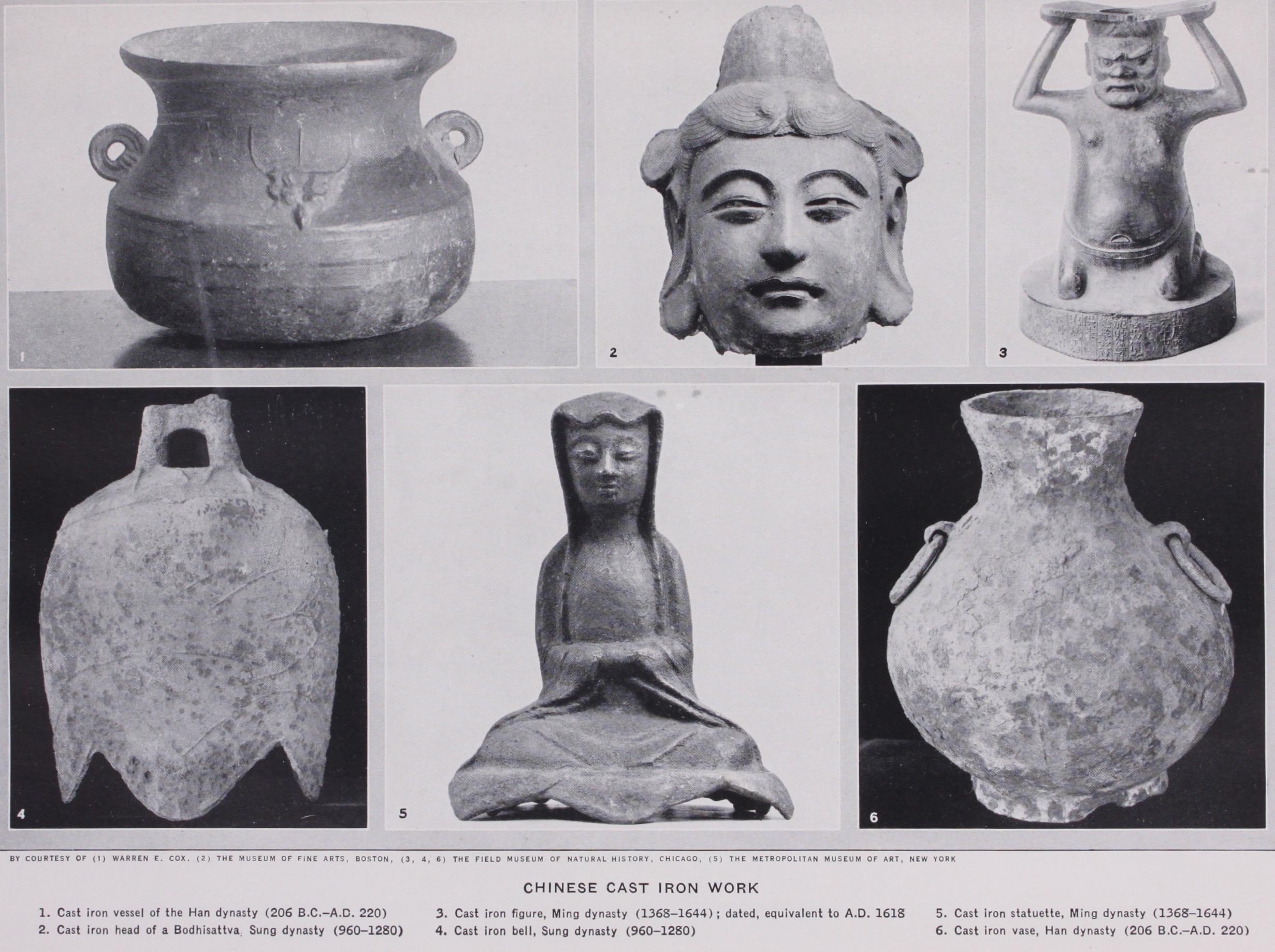 Materials should not be taken from their proper spheres and used by tricks and illusions in other spheres. For instance, there are workers in iron who attempt to make this metal look like wood, gold or bronze. They finish it and work it so that it tricks the observer, distorting one material into the semblance of an other, thereby losing both its simplicity and significance. Some times colour is used on metal work. A decorator often wishes to carry his colour scheme into lighting fixtures or other metal work, but although occasionally a little gilt may be used to give warmth to a piece of work, the colour should not be used with the idea of concealing bad workmanship. The most logical way to give colour to ironwork is to incorporate another metal, such as brass of a golden colour, applied or inlaid. Colour is also used as a background for ironwork. This is especially done in cases of pierced work or when the motif is of an open design. The iron work is then backed with some material, such as an old red velvet. This may also be done in cases of mounting ironwork on wood work, where the woodwork is stained so as to make a suitable background for the ironwork. (S. Y.) In casting decorative ironwork it is first necessary to adapt or conform the ornament to suit this class of work, then to prepare the patterns for the moulder. The production of the work now becomes a mechanical repetition, and whether the castings from each pattern be few or many, the results will always be an invariable sameness.