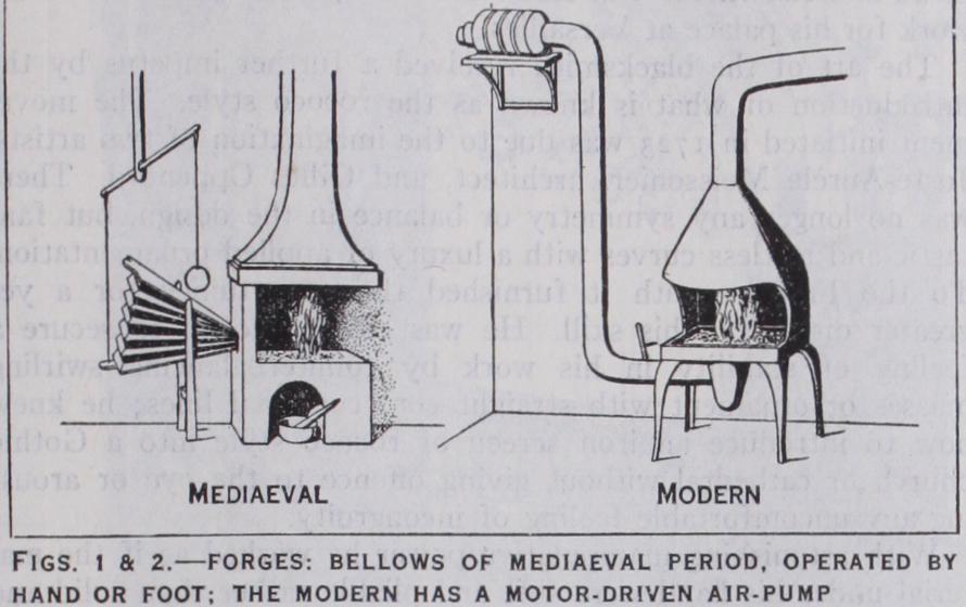 The end of the mediaeval period in Europe found the smith departing from legitimate design in his work and indulging in methods hardly appropriate to his material; attractive as the result is, it does not satisfy our sense of what work in iron should be, nor did it serve to bring out the power of the craftsman.