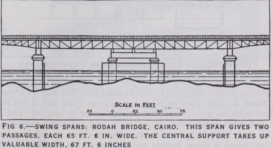 those that reach over more than one open ing, usually three. They have the advantage of being lighter and of being deflected less than independent spans, but the stresses are more difficult to determine and great change of stress takes place in them if the supporting piers subside by even a small amount. While largely discarded in Europe, this type of bridge is being increasingly developed in America. However, in addition to the problems of stress, this type has the disadvantage of alterations in length, due to temperature, which are difficult to arrange for, as they represent the total variations of several openings. Britannia bridge (fig. 2), with two spans of 46oft., and two of 23oft., is continuous over all three piers, and the expansion and contraction to be dealt with at each end amounts to a total of 4 inches.