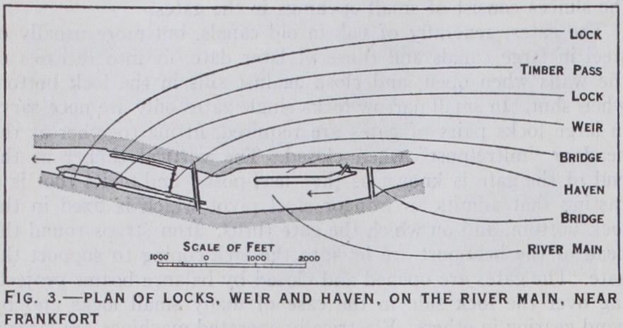 The lift of canal locks, i.e., the difference between the levels of adjoining reaches, rarely exceeded 12ft. up to the end of the 19th century and in some locks the lift is as little as i If t. The modern practice is to build one lock with high lift in preference to a flight of shallower locks in all cases where the configuration of the ground and considerations of water supply allow of this being done. In Germany, for instance, there is at least one lock with a lift of over 65f t., and lifts of 20 to 4oft. are not uncommon in America and on the continent of Europe.