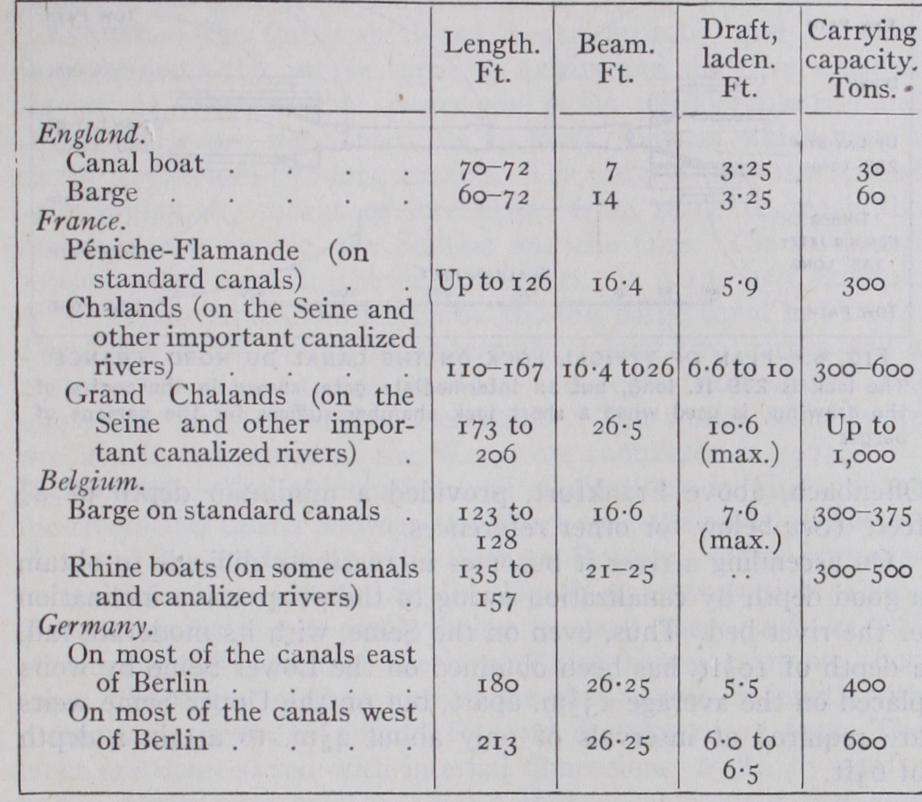 On the Aire and Calder navigation, where the locks have a minimum length of 21 sf t., a large coal traffic is carried in trains of boat-compartments. The boats are nearly square in shape, ex cept the leading one which has an ordinary bow. They are coupled together so that they can move both laterally and vertically ; and a wire rope in tension on each side enables the train to be steered. No boat crews are required, the crew of the tug regulating the train. Each compartment carries 35 tons, and the total weight in a train varies from 700 to 90o tons. On the arrival of a train at Goole the boats are detached and discharged into sea-going ships by means of cradles and hydraulic hoists.
