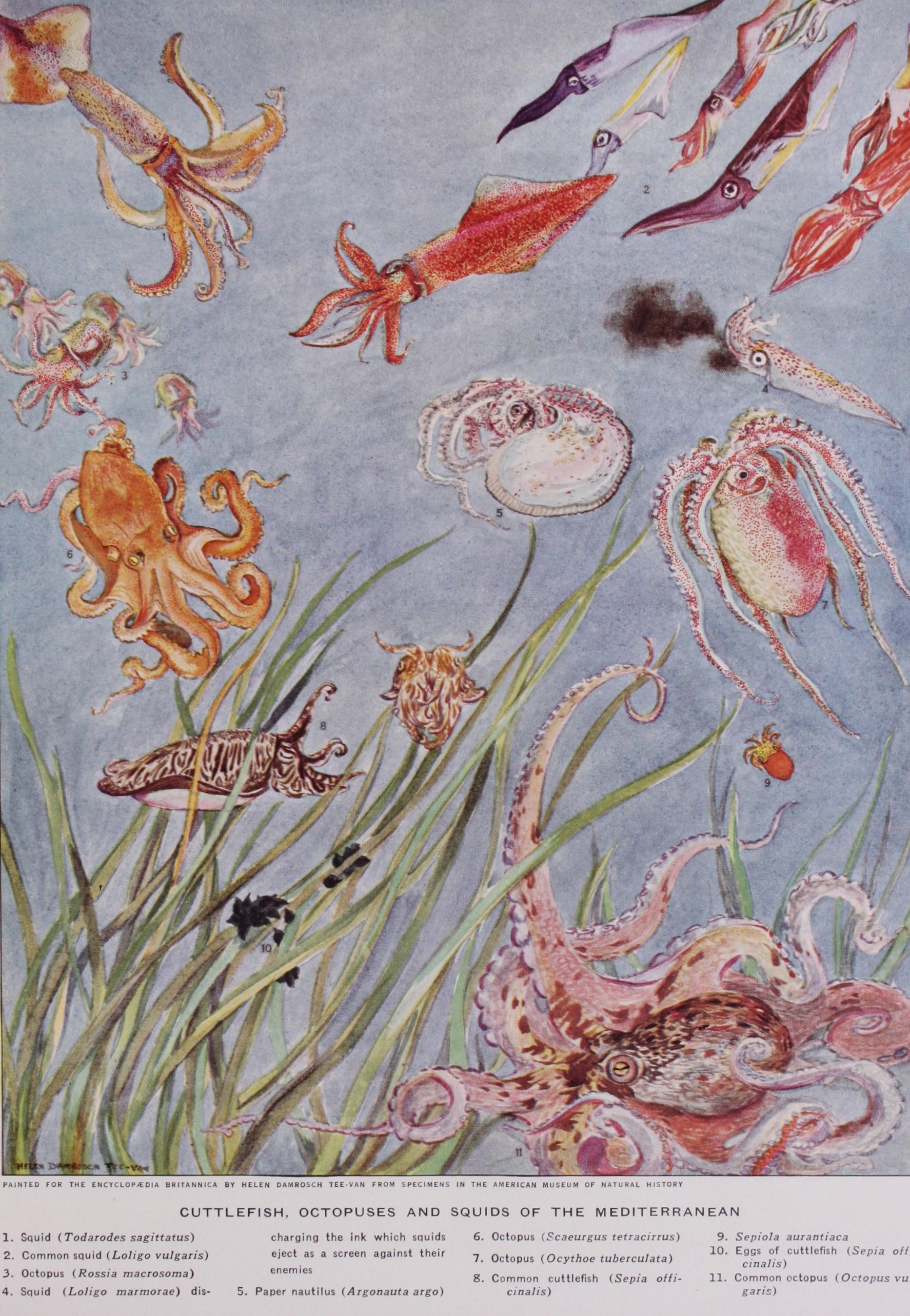 Distribution and Natural History.—The Cephalopoda are exclusively marine animals. No authentic records are available of their occupation of fresh or brackish water. Although they are occasionally carried into estu aries, they do not tolerate water of reduced salinity. In this re spect they are comparable with the Amphineura and Scaphopoda among other Mollusca and with the Echinoderma and Brachio poda. It is interesting, but rather fruitless to speculate as to why so highly organized and dominant a group has never, as far as we know, accommodated itself to fresh water. The fact that there are many littoral species further emphasizes this exclusiveness.