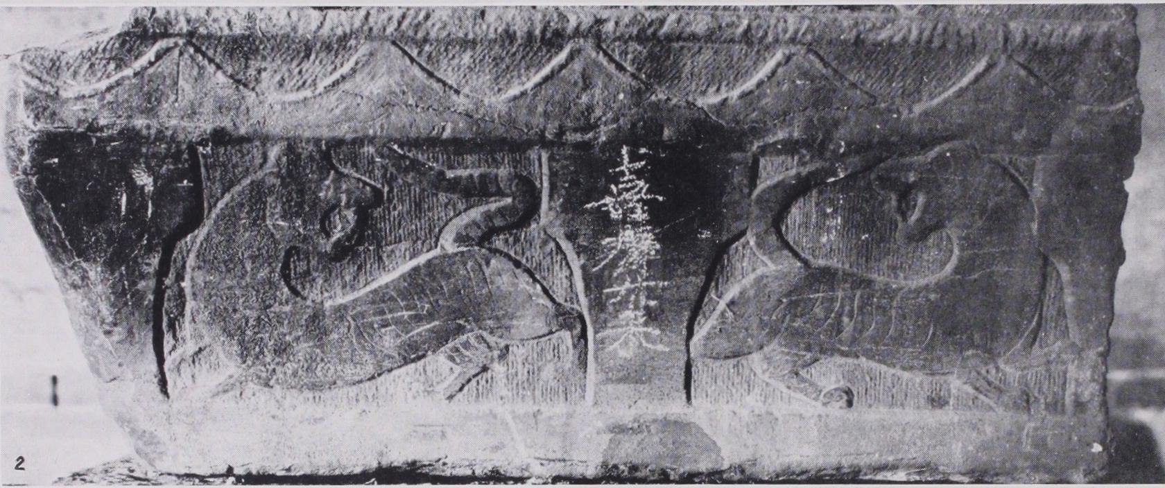 Less Hellenistic and more definitely Scytho-Iranian in char acter are the winding dragons and heraldically placed tigers which appear in one or two of these reliefs. They belong to the same great family of ornamental animals which we also met on the stone pillars in Szechuan, and may thus be said to form some additional proofs of the general acceptance of this kind of animal sculpture during the Han period.