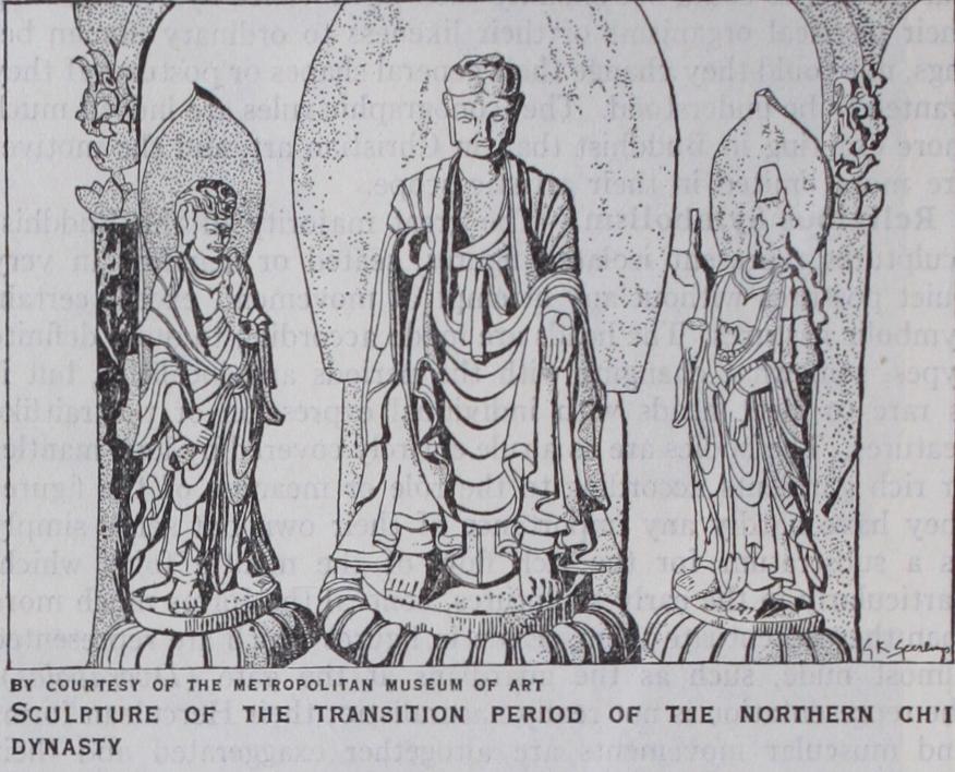 Honan Sculptures.—When we pass from the metropolitan province of Shensi into the adjoining province of Honan we may at once observe that the general character of the sculptures be comes modified. The provincial schools and stylistic differentia tions seem on the whole to have become more developed at this time than at earlier epochs; it is now easier to distinguish the provincial currents.