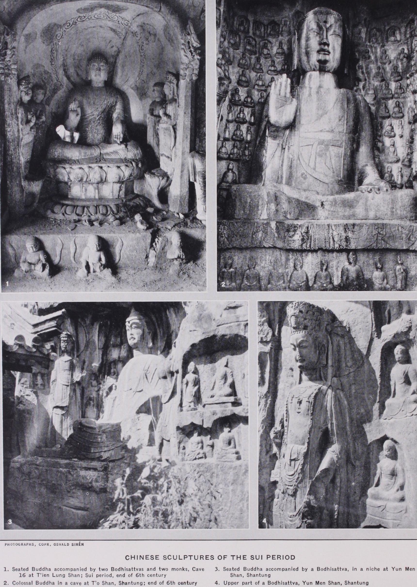 The richest and most varied provin cial group of sculptures from the Sui period is to be found in Shantung. The religious fervour and interest in establishing Buddhist temples and sanctuaries seem to have been particularly great in this part of the country and, to judge from the sculptures still preserved in several of these caves, there must have existed an important tradition of religious art which was now revived by various masters of no common ability. The earliest caves are at T'o Shan and Yu Han Shan ; at the latter place many of the figures are dated in the 4th, 5th and 6th year of the K'ai Huang era (584-586), but unfortunately they are largely restored with plaster and crude colouring.