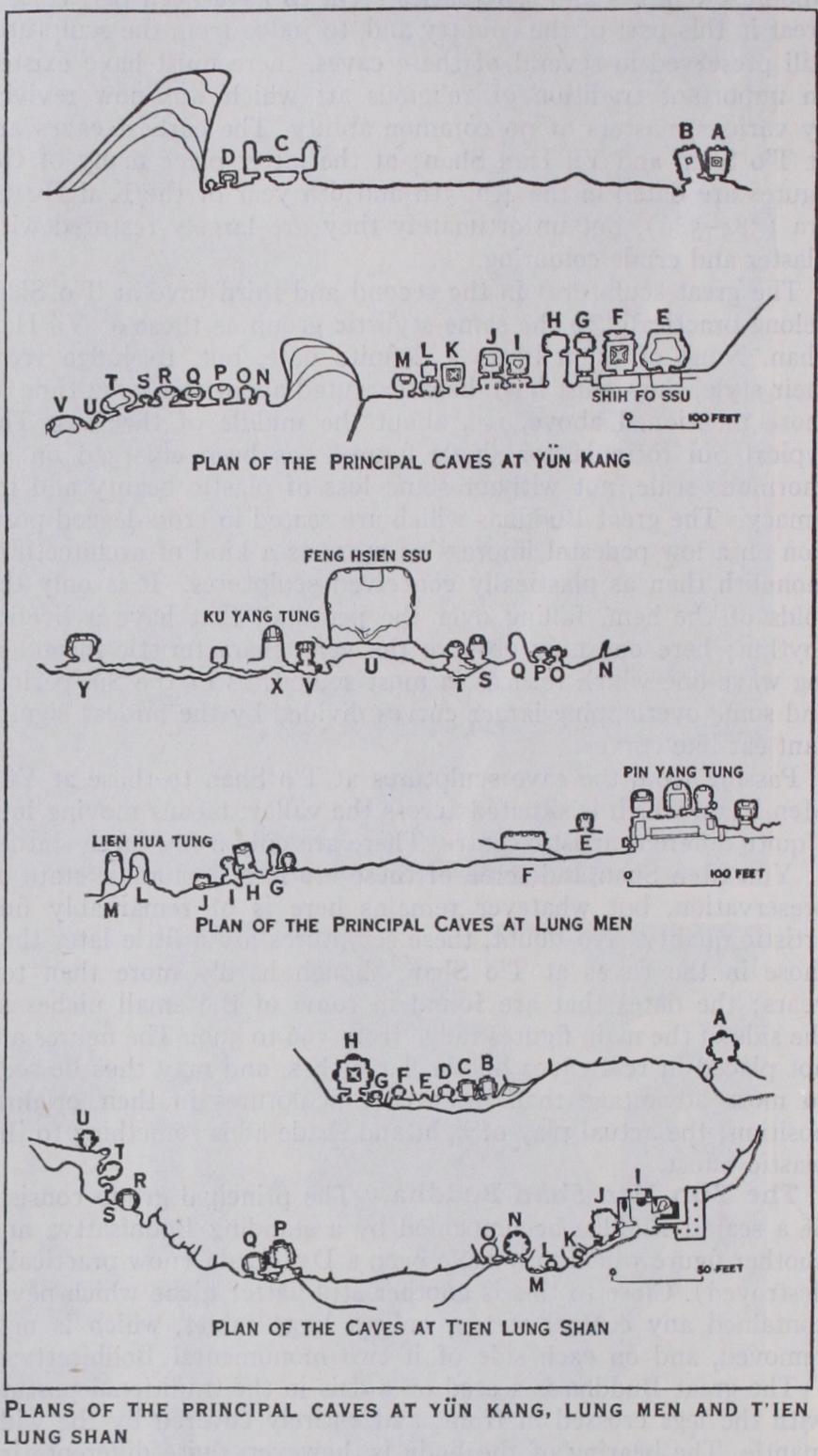 The same energetic style as in the best Yiin Kang sculptures may also be observed in some of the statues in the famous temple grottoes at Lung Men in Honan which were begun shortly after the Northern Wei dynasty had transferred its capital to Loyang (494)• During the last decade these caves have been so badly destroyed that hardly