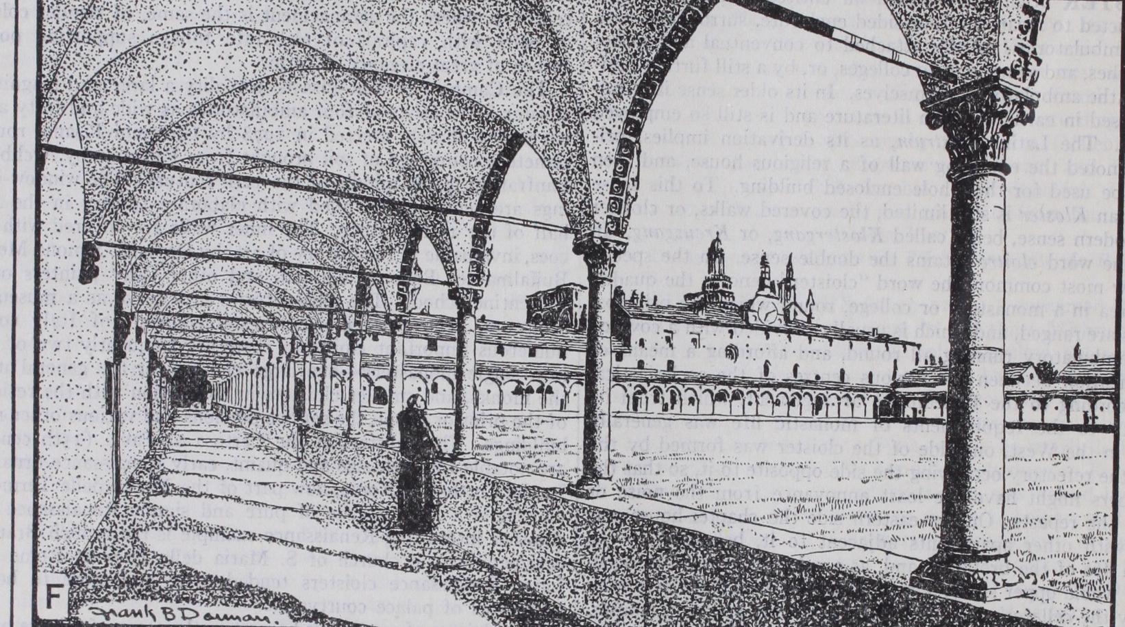 The cloister of a religious house was the scene of a large part of the life of its inmates. It was the place of education for the younger members, and of study for the elders. A canon of the Roman council of 826 enjoins the erection of a cloister as an essential portion of an ecclesiastical establishment for the better discipline and instruction of the clerks. Peter of Blois describes schools for the novices as being in the west walk, moral lectures being delivered in that next the church. At Canterbury the monks' school was in the western ambulatory, and it was there that the novices were taught at Durham (Willis, Monastic Build ings of Canterbury, p. 44 ; Rites of Durham, p. . The other alleys, especially that next the church, were devoted to the studies of the elder monks. The constitutions of Hildemar and Dunstan enact that between the church service the brethren should sit in the cloister and read theology. For this purpose small studies, known as "carrols," i.e., a ring or enclosed space, were often found in the recesses of the windows. Of this arrangement there are examples at Gloucester and Chester. The use of these studies is thus described in the Rites of Durham: "In every wyndowe" in the north alley "were iii. pewes or carrells, where every one of the olde monkes had his carrell severally by himself e, that when they had dyned they dyd resorte to that place of cloister, and there studyed upon their books, every one in his carrell all the afternonne unto evensong tyme. This was there exercise every daie." On the opposite wall were cupboards full of books for the use of the students. The cloister arrangements at Canterbury were similar. New studies were made by Prior De Estria in and Prior Selling (1 47 2-94) glazed the south alley, and con structed "the new framed contrivances, of late styled carrols" (Willis, Mon. Buildings, p. 45 )• The cloisters were used also for recreation. The constitutions of Archbishop Lanfranc, sec. 3, permitted the brethren to converse together there at certain hours. To maintain discipline a special officer was appointed under the title of prior claustri. The cloister was furnished with a stone bench running along the side. It was also provided with a lavatory, usually adjacent to the refectory, but sometimes standing in the central area termed the cloister garth, as at Durham. The cloister-garth was used as a place of sepulture, as well as the surrounding alleys. The cloister was in some few instances of two stories, as at Old St. Paul's and St. Stephen's chapel, Westminster, and occasionally, as at Wells, Chi chester and Hereford, had only three alleys, there being no ambu latory under the church wall.