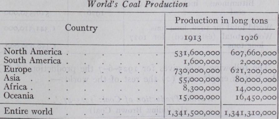 The relative importance of the great coal-producing countries in point of coal production is illustrated diagrammatically in fig. 3. In regard to Great Britain, the average figures are taken and not those for the year 1926, as it was the year of the great national lock-out in the coal mining industry. In the case of the other countries named the figures are for the year 1926. In respect of Germany, the brown coal has been converted into terms of bituminous coal by dividing the output of brown coal by three.
