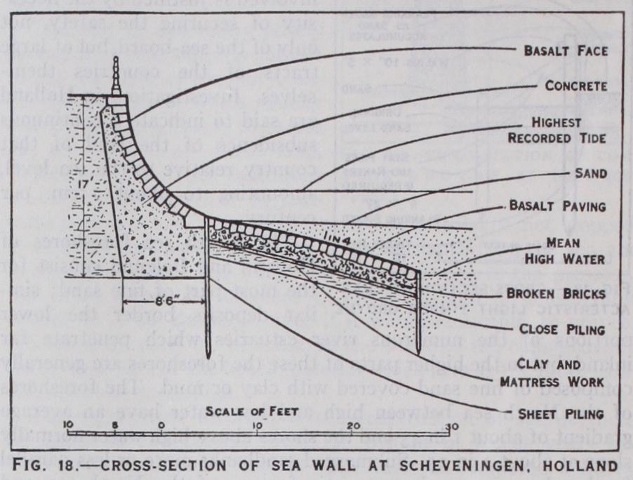 THE RECLAIMING OF THE ZUIDER ZEE The partial reclamation of the Zuider Zee, undertaken by the Dutch Government in 1918, is the greatest work of its kind ever attempted. The earliest plans for regaining the submerged lands of the Zuider Zee date from the i 7th century, but it was not till the middle of the 19th century that serious proposals began to be considered. Among these plans were those of van Diggelen, 1849, Leemans, 1877, and the various schemes of the engineer C. Lely, subsequently Minister of Public Works, which appeared between 1887 and t 891; the last of which is substantially that on which work was actually commenced in 192o. The finally approved scheme as shown in the plan fig. 4 includes : (I) a sea dike about I gym. long between the mainland of north Hol land and the island of Wieringen, completed in 1926; (2) a drainage and navigation canal for small vessels, also finished in 1926, extending from the western end of the Wieringen dike near van Ewijcksluis along the coast of North Holland to Helder. This canal will maintain the access from the Texel channel to the old North Holland canal at de Kooi by a lock at that place, and connect with canals to be formed along the eastern coast line of North Holland up to Amsterdam; (3) the main sea dike, about 18m. long, from the eastern end of the island of Wieringen to the Frisian coast near Zurig (figs. 4, 5 and Plate). Two sets of sluices will be provided, one set near each end of the dike, the total width of the sluice openings being about I,000f t. Navigation locks for vessels up to about 2,000 tons in capacity are also to be built near the ends of the dike. This part of the work was com menced in 1926 and is expected to be completed in A large part of the section of the sea dikes is formed of boulder clay dredged from the Zuider Zee, brought to the depositing sites in barges and unloaded by grab dredgers. The sand filling of the dikes is pumped; (4) the reclamation of four areas (polders), by the construction of secondary dikes inside the sea dikes, aggregating about 553,000ac. thus increasing the total land area of Holland by about 7% and the arable land alone by 1 o% ; (5) The formation, inside the main sea dike, of an inland fresh water lake of about 247,000ac. called the Yssel lake, to provide for the disposal of the flood waters of the river of that name, and a canal, about im. wide, connecting this lake with a smaller one (Y lake) to the east of Amsterdam. This canal will separate the south-west polder from the south-east polder and will have a regulating lock and sluices at its entrance from Lake Yssel.