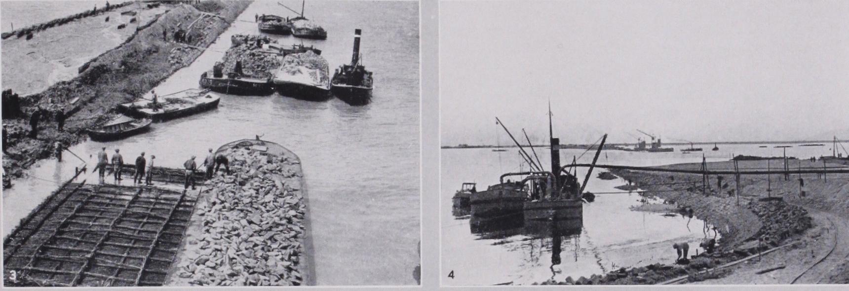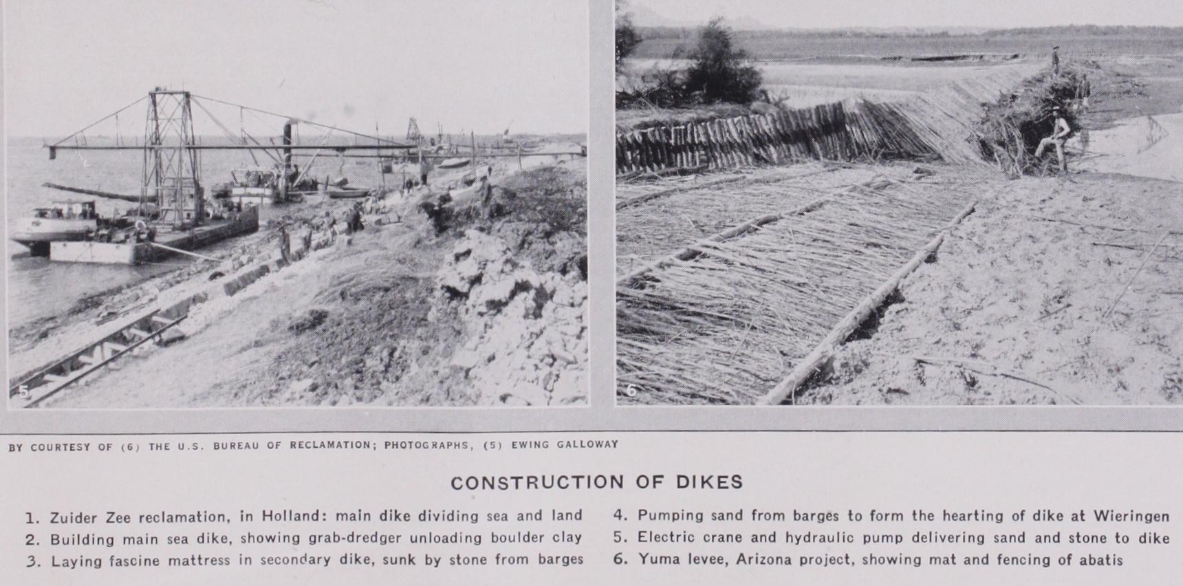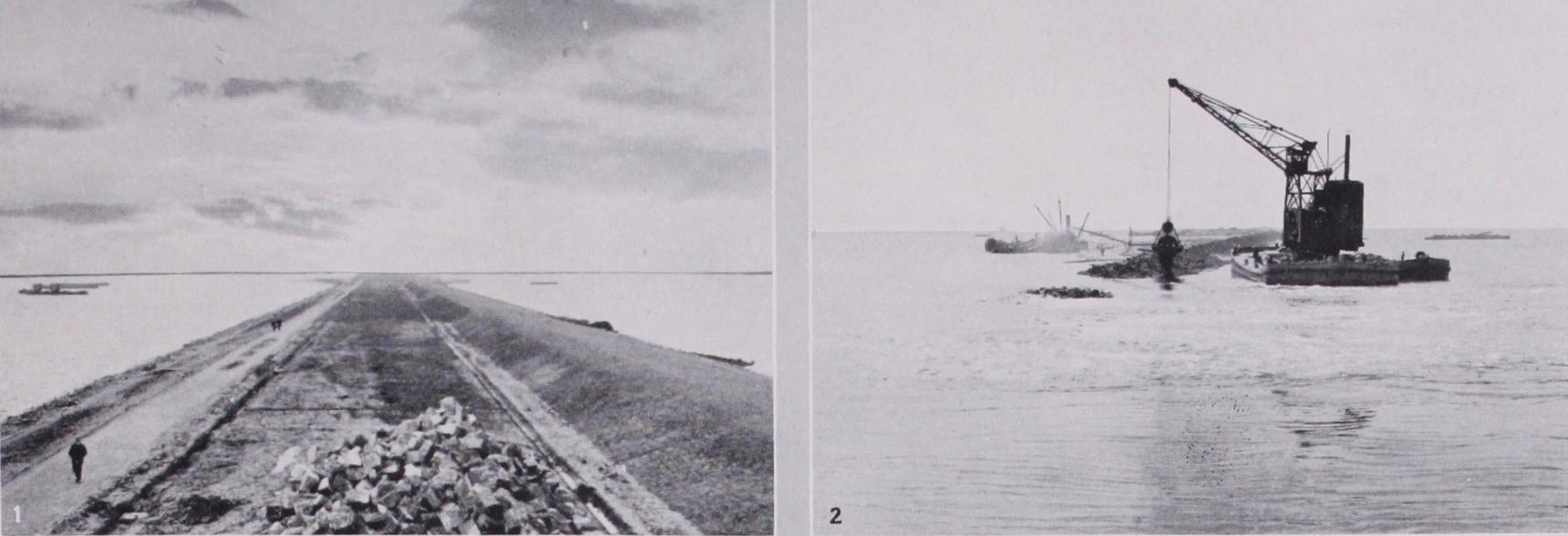 The draining of the reclaimed land will be accompanied by a shrinkage, the amount of which, it is expected, will vary between one and three feet. All the polders will be at levels considerably below sea level, and the lowest drainage channels will be as much as 2 2 f t. below the Yssel lake level. Pumps will be installed at points on the borders of the polders to provide for the drainage of the land. They will lift land water up to the level of the lake and discharge it over the secondary dikes. _ The reclaiming of the north-west polder (Wieringen) was com menced in 192 7 ; and it is proposed to begin the work on the three remaining polders as soon as the main sea dike is com pleted, probably in 1934. The north-west polder will be finished about 1932, but cultivation will not be possible till three or four years later. It is calculated that the lands will not have become so free from salt as to reach their full capital value until the i4th or 15th year from this commencement of the reclamation of a polder.