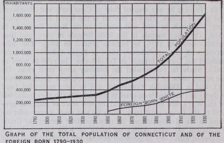 In the Civil War Connecticut was one of the most ardent sup porters of the Union cause. When President Lincoln issued his first call, for 75,00o volunteers, there was not a single militia company in the State ready for service. Gov. William A. Buck ingham 5) , one of the ablest and most zealous of the "war governors," and afterwards, from 1869 until his death, a member of the United States Senate, issued a call for volunteers in April 1861 ; and soon 54 companies, more than five times the State's quota, were organized. Corporations, individuals and towns made liberal contributions of money. The general assembly made an appropriation of $2,000,000, and the State furnished approxi mately 48,00o men to the army. Equally important was the moral support given to the Federal government by the people. After the war the Republicans were more frequently successful at the polls than the Democrats. Representation in the lower house of the general assembly, by the constitution of 1818, was based on the townships, each township having two representatives, except townships created after 1818, which had only one each. This method constituted a serious evil when, in the transition from agriculture to manufacturing as the leading industry, the popula tion became concentrated to a considerable degree in a few large cities and the relative importance of the various townships was greatly changed. The township of Marlborough, with a population in 1900 of 322, then had one representative, while the city of Hartford, with a population of 79,85o, had only two; and the township of Union, with 428 inhabitants, and the city of New Haven, with 108,027, each had two representatives. The appor tionment of representation in the State senate had become almost as objectionable. By a constitutional amendment of 1828 it had been provided that senators should be chosen by districts, and that in the apportionment regard should be had to population, no county or township to be divided and no part of one county to be joined to the whole or part of another county, and each county to have at least two senators; but by 190o any relation that the districts might once have had to population had dis appeared. The system of representation had sometimes put in power a political party representing a minority of the voters : in 1878, 1884, 1886, 1888 and 1890 the Democratic candidates for State executive offices received a plurality vote; but, as a majority was not obtained, these elections were referred to the general assembly, and the Republican Party, in control of the lower house, secured the election of its candidates; in 1901 constitutional amendments were adopted making a plurality vote sufficient for election, increasing the number of senatorial districts, and stipu lating that "in forming them regard shall be had" to population.