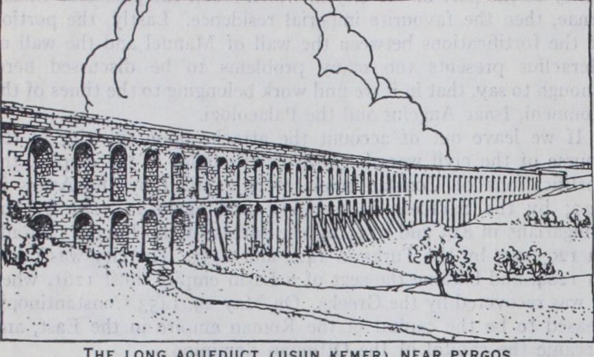 The splendid wall, flanked by nine towers, that descends from the court of Tekfour Serai to the level tract below Egri Kapu, was built by Manuel Comnenus ( i 143–I 18o) for the greater se curity of the part of the city in which stood the palace of Blach ernae, then the favourite imperial residence. Lastly, the portion of the fortifications between the wall of Manuel and the wall of Heraclius presents too many problems to be discussed here. Enough to say, that in it we find work belonging to the times of the Comneni, Isaac Angelus and the Palaeologi.