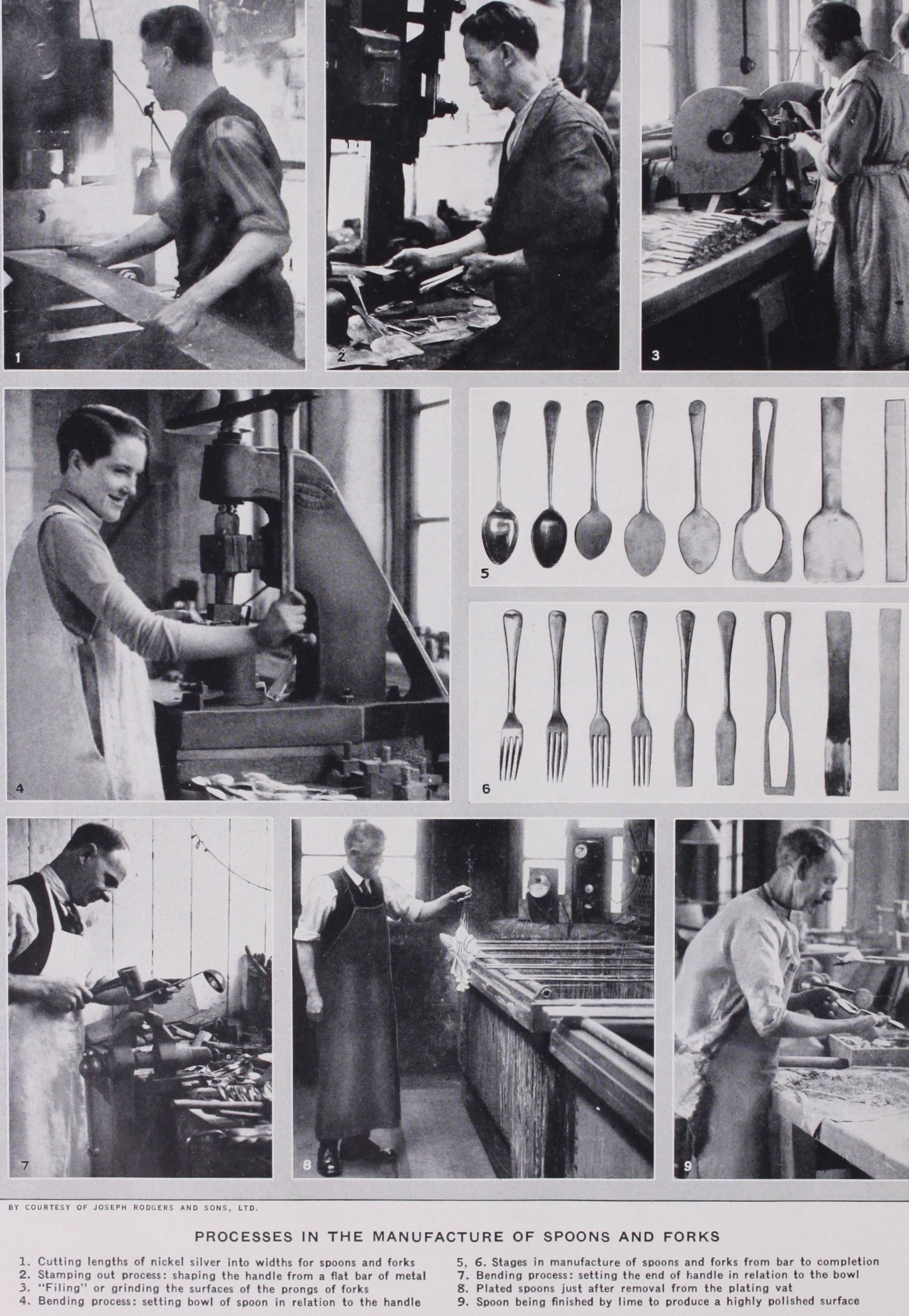 The Craftsman.—One of the most interesting features of the cutlery trade is the survival of some of the old guild conditions, particularly in Sheffield. The practice of dividing the trade into three sections of forging, grinding and finishing still continues.