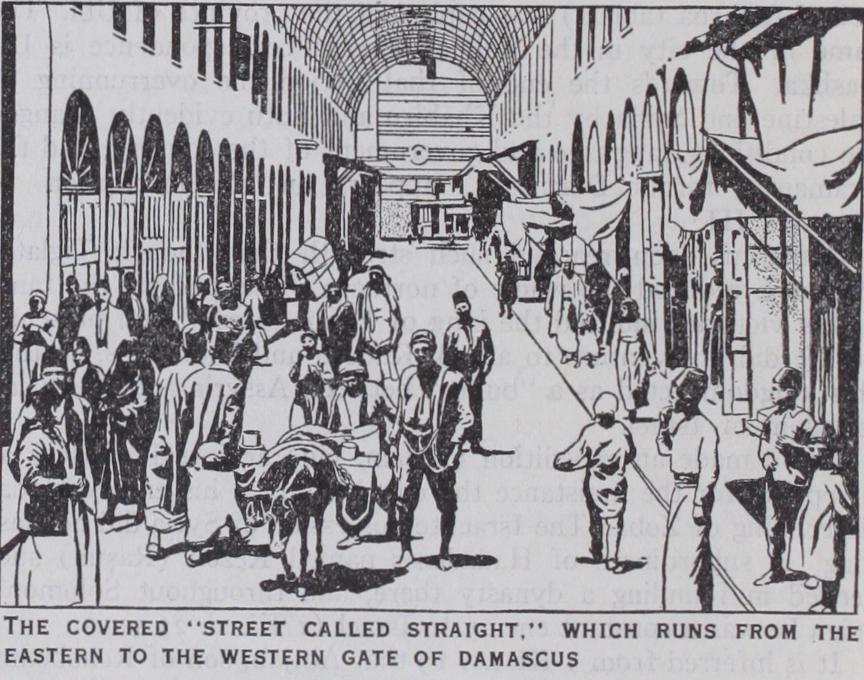 BIBLIOGRAPHY.—A. V. Kremer, Topographie von Damaskus (1854), Bibliography.—A. V. Kremer, Topographie von Damaskus (1854), z vols. ; J. L. Porter, Five Years in Damascus (185 5) , 2 vols.; Sir G. A. Smith, Historical Geography of the Holy Land (1895 Ac.) ; Hastings, Dictionary of the Bible (W. Ewing), Encyc. of Islam (R. Hartmann) ; C. Watzinger u. K. Wulzinger, Damaskus, lie Antike Stadt (1921) ; R. Dussaud, Le Temple de Jupiter Damas ;enien et ses transformations aux epoques Chretienne et mussulmane; Syria, 1922, 219 seq.; J. E. Hannaver, Damascus; Notes on changes made in the city during the Great War: Pal. Expl. Fund Quart. Statement, 1924, 68 sq.; Syria and Palestine Guide Books; Consular Reports and Reports of Department of Overseas Trade. (E. Ro.) Prior to the World War, Damascus was the headquarters of the IV. Turkish Army, and after the outbreak of hostilities be came the base of the Turkish and German forces operating in Palestine and on the east bank of the Suez Canal under General Liman von Sanders. On Oct. r, 1918, the city fell into the hands of the Egyptian Expeditionary Force under Lord Allenby (q.v.) and the Arab troops of the Emir Feisal (q.v.). The advance on Damascus was a purely cavalry operation, and at the city itself no resistance was made to the British and Arab troops. By Sept. 3o the Australians had worked round the north; the desert column was lying to the west ; and the Arab force was at the southern outskirts of the city. Itlost of the Germans and Turks, of ter severe quarrelling, had already left.