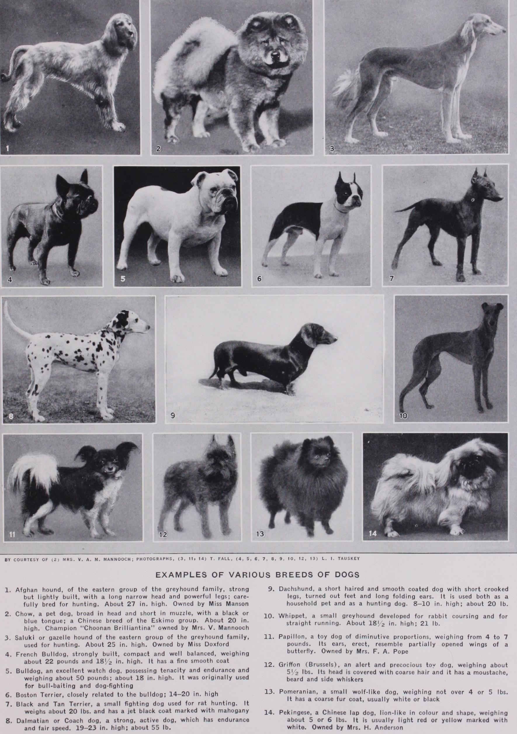 Of modern European breeds, probably the Alsatian (some times called the Police dog), which differs mainly from the wolf in its finer head, smaller teeth and shorter, more uniform coat, comes nearest to the ancestral type. From this breed it is evi dent that the selective agency of man has produced breeds of dogs differing profoundly from the prototype.