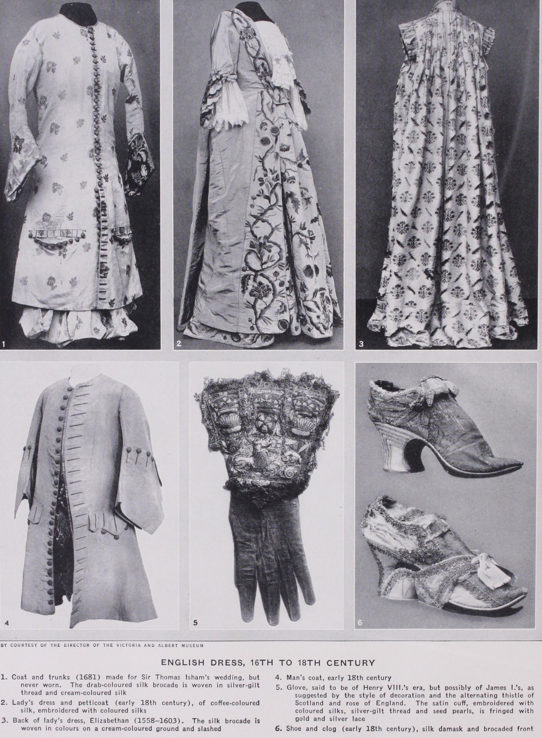 18th Century.—At the beginning of the 18th century the skirts of men's coats had become fuller and the sleeves had wide cuffs. The sleeved waistcoat was shortened, and at times it was richly embroidered. In course of time the sleeves disap pear. As the century advances a distant approximation to the frock-coat of later times is discernible, but the materials con tinue to be rich. Velvet, often woven in tiny diaper patterns, was much used. When the material was plainer, elaborate em broidery in silk, often embellished with glass pastes and spangles, was usual for fashionable dress. During the course of the cen tury, the skirts of the coat and the corners of the waistcoat were cut away in front, reducing the form more nearly to that of morning-dress of the present day.