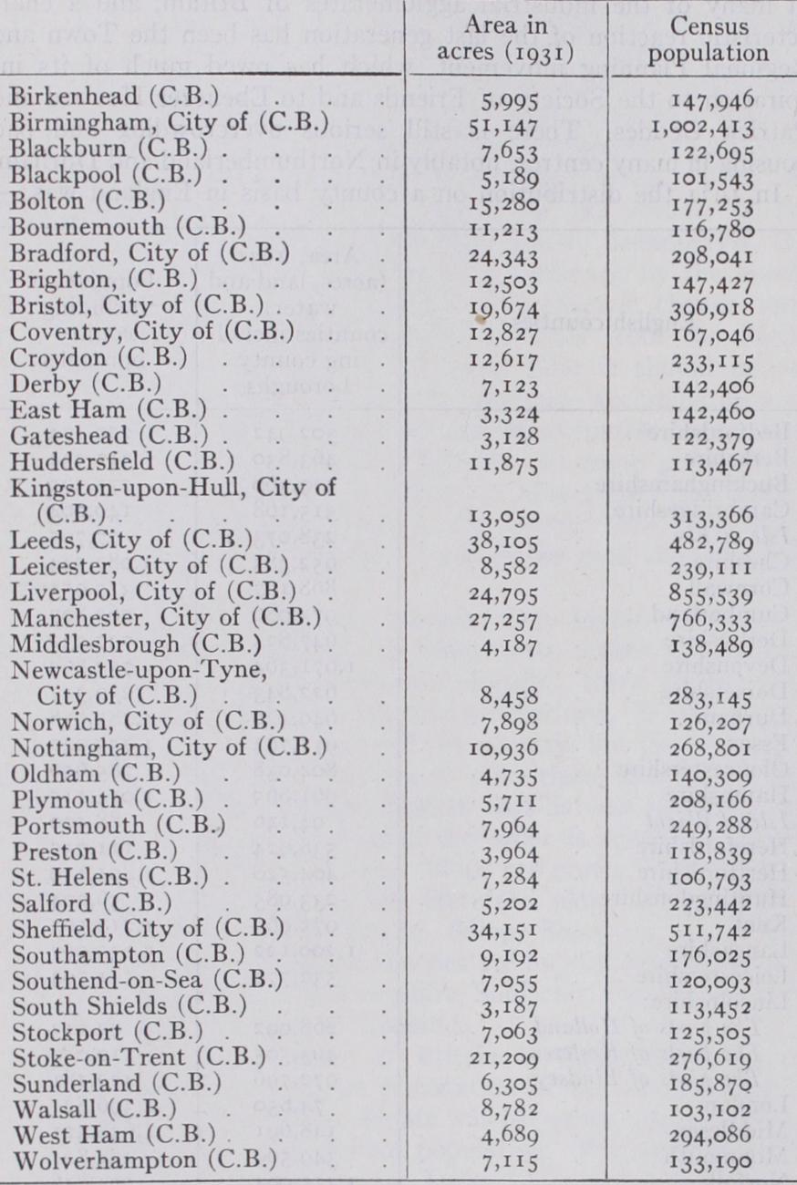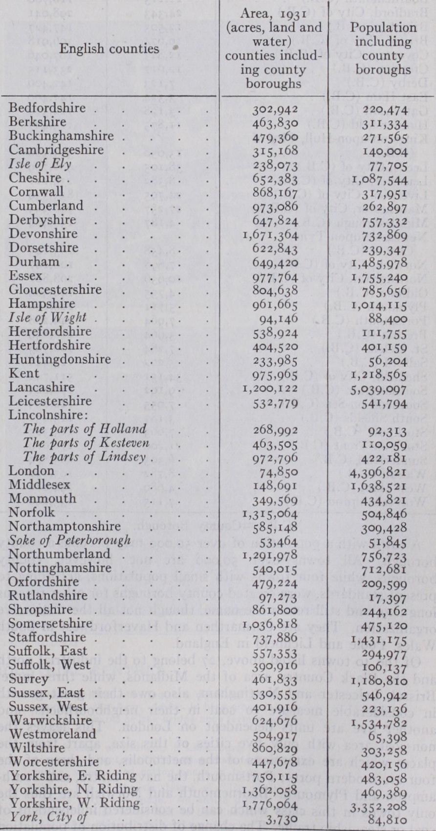 Of the 4o towns listed above, 27 belong to the industrial north and the Black Country area of the Midlands, while three more, Bristol, Leicester and Nottingham, also owe their great growth in considerable measure to coal in their neighbourhoods, and another five are units dependent on London. This leaves the non-coal area with only five cities of this size, apart from the places which are extensions of the metropolis, and three of the four are modern ports; Portsmouth. the naval centre, and South ampton and Plymouth. Bournemouth and Norwich are thus the only towns in this class which can be considered independent of coal or steamship traffic. The change of distribution of population following the rise of industry is thus dramatically demonstrated.