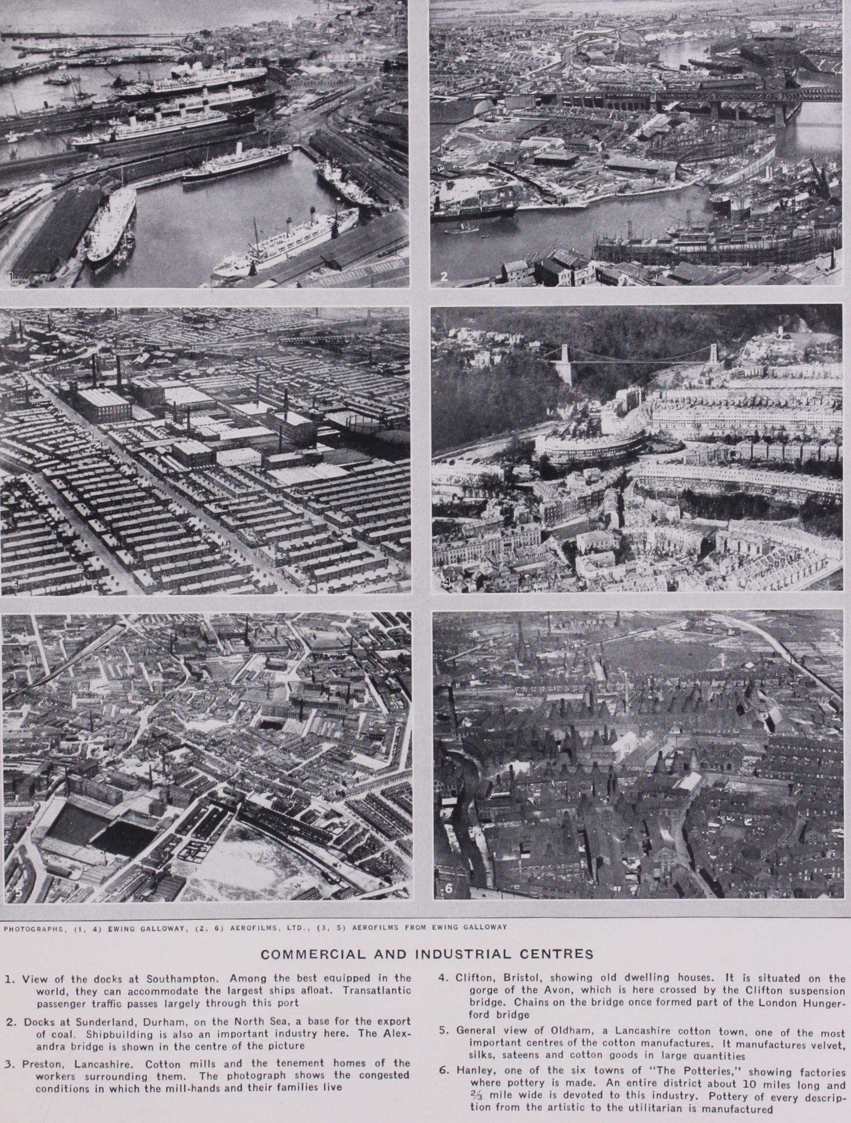 Ashton, Oldham, Rochdale, Bury, Bolton and Wigan form a nearly confluent semicircle of great towns, dependent on the un derlying coal and iron and on imported cotton. The lime-free water of the region is also important for bleaching. The Lan cashire coal-field, and the portion of the bounding plain between it and the seaport of Liverpool, contain a population greater than that borne by any equal area in the country, the county of London and its surroundings not excepted. Here again the region shows concentration in certain towns of highly specialized processes. Bol ton concentrates on the spinning of fine Egyptian cotton and is im portant in the bleaching industry; Oldham deals with the medium counts, while the suburbs of Manchester deal with spinning and the city itself is the great market of the finished goods. Liverpool stands out as the great entrepxt for raw cotton and the export centre of the finished goods.