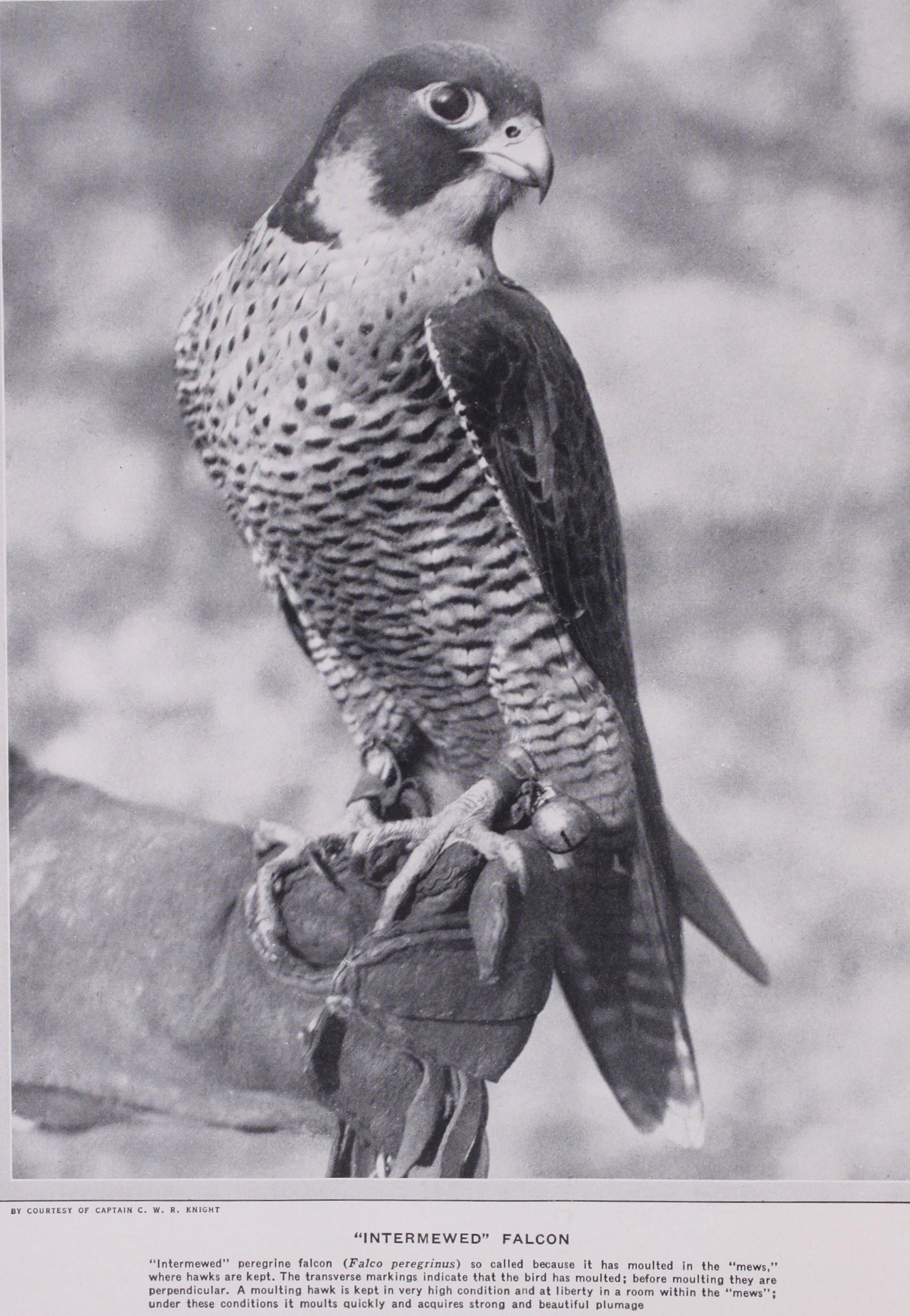 The best way, where practicable, of keeping hawks, is to tether them to blocks on the lawn. Goshawks are generally placed on bow perches, which ought not to be more than 8 or 9in. high at the centre of the arc. It will be several months before passage or wild-caught falcons can be kept out of doors; they must be fastened to a perch in a darkened room, hooded, and, by degrees, as they get tamer, they may be put out on the lawn. In England (especially in the south) peregrines, the northern falcons and goshawks may be kept out of doors all day and night in a shel tered situation. Merlins, being more delicate, should be given more protection. In wild boisterous weather, or in snow or sharp frost, it would be advisable to move them to the shelter of a shed, the floor of which should be laid with sand to a depth of 3 or 4 inches. An eastern aspect is best—all birds enjoy the morning sun and it is beneficial to them. The more hawks confined to blocks out of doors see of persons, dogs, horses, etc., moving about, the better. Those who have only seen wretched ill-fed hawks in cages, pining for exercise, with battered plumage, torn shoulders, and bleeding Ceres, from dashing against their prison bars, and with overgrown beaks from never getting bones to break, can have little idea of the beautiful and noble-looking birds to be seen pluming their feathers and stretching their wings at their ease on their blocks on the lawn, watching with their large, bright, keen eyes everything that goes on in the sky, and everywhere else within their view.
