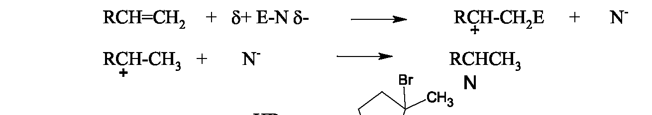 ALKENE ADDITION REACTIONS The general classification of reactions involving alkenes is addition to the carbon-carbon double bond, forming two new single bonds. The term stereoselective describes a reaction which gives a preferred stereoisomeric product in preference to others that are possible from the reaction, and many of the alkene addition reactions are classified as stereoselective. Another term, refers to production of one constitutional isomer during a reaction in preference to others, and many alkene reaction also show regioselectivity. These details of alkene reactions help in establishing reasonable mechanisms for the addition reactions. Three different modes of addition are found which include syn addition - both new bonds form from the same side(face)of the double bond, anti addition - the two new bonds form from opposite faces of the double bond, and addition which is non-stereoselective, showing syn and anti addition products. Inmost cases of syn addition, both new bonds formed simultaneously, without an intermediate species. In cases of anti addition, a bridged, three-membered ring type of intermediate forms by an electrophile binding both carbons of the double bond, which then is opened by a nucleophile from the opposite side. In cases which show both syn and anti addition, a carbocation or free radical intermediate is produced, and free rotation allows the second new single bond to form on either side.