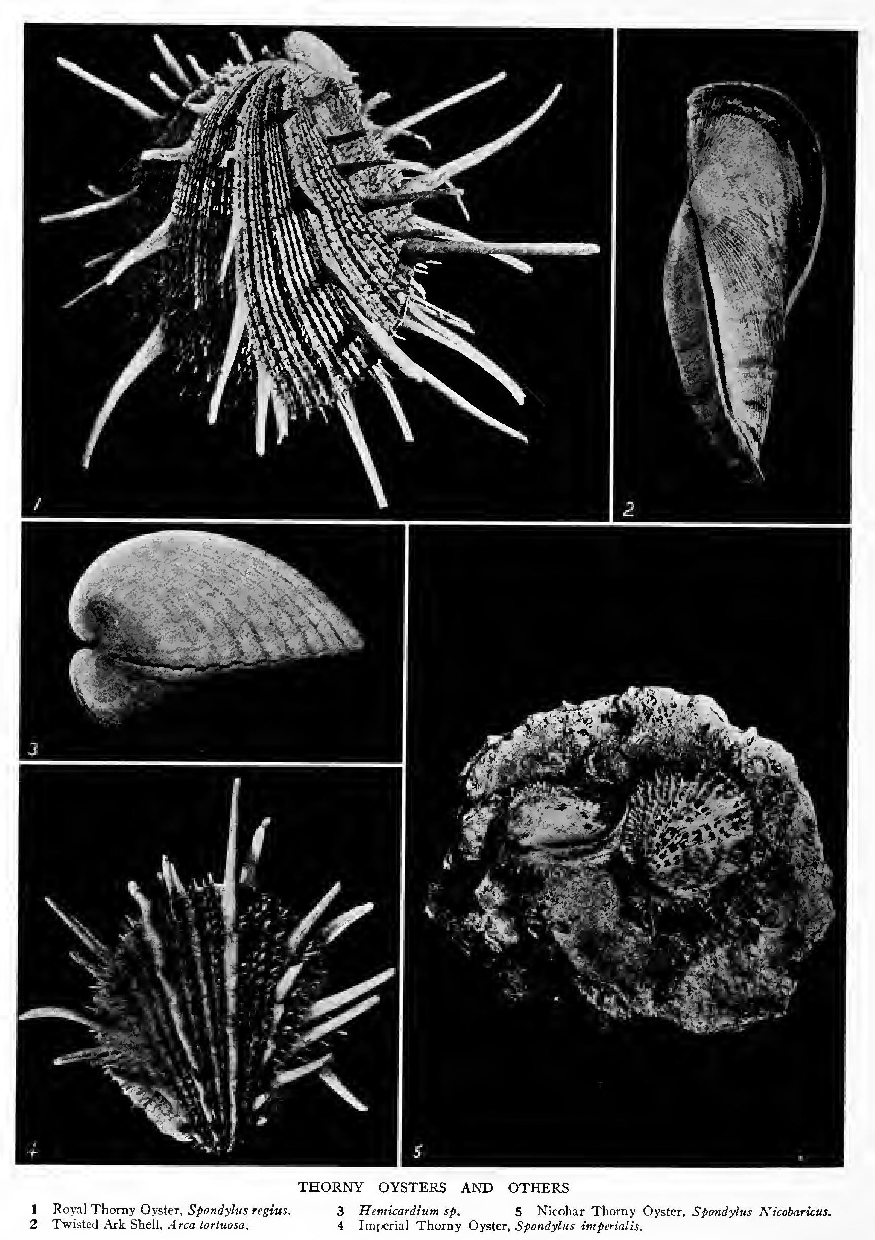 406 The Thorny Oysters The Thorny-oyster Foot Shell (P. Spondyloideum, Gmel.) has an outline somewhat suggesting the human foot. The animal between these flat valves must be very thin. It was first de