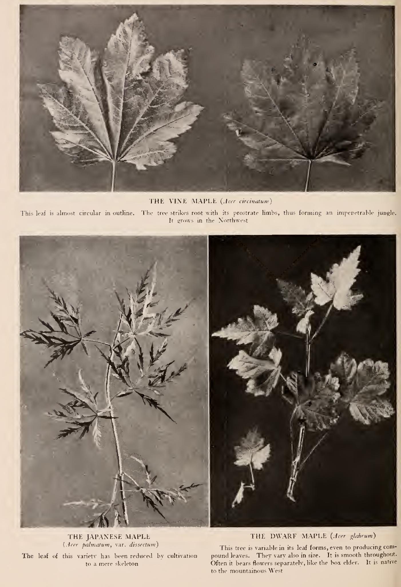 Acer palmatunz and A. japonicum, with their varieties, show all possible gradations from a broad palm to the merest skeleton of a leaf. The Japanese worship beauty such as these garden maples show; and in the autumn when each careful gardener has brought his maples to their utmost perfection, a grand national fete is celebrated. The people dress for a holiday, and go forth "to view the maples." It is a day of picknicking,