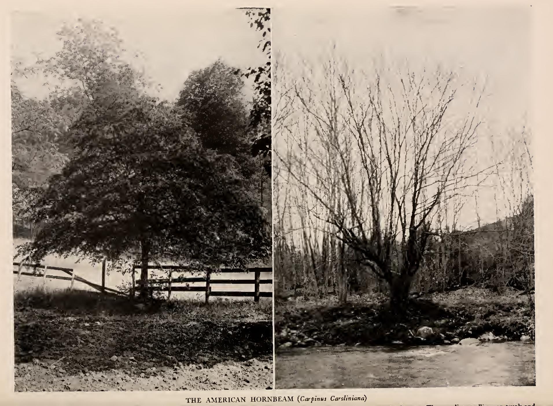 The hop hornbeam is of a retiring disposition, preferring to hide in the .shadows of taller trees. But there is nothing dark or funereal about it. The leaves, bright and green, are held out in level platforms where they can get the sunbeams that trickle down to them. Then comes summer, and the pale green "hops"